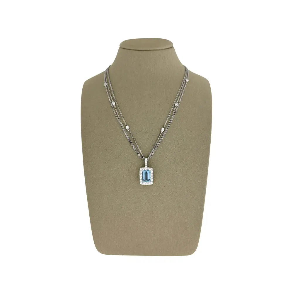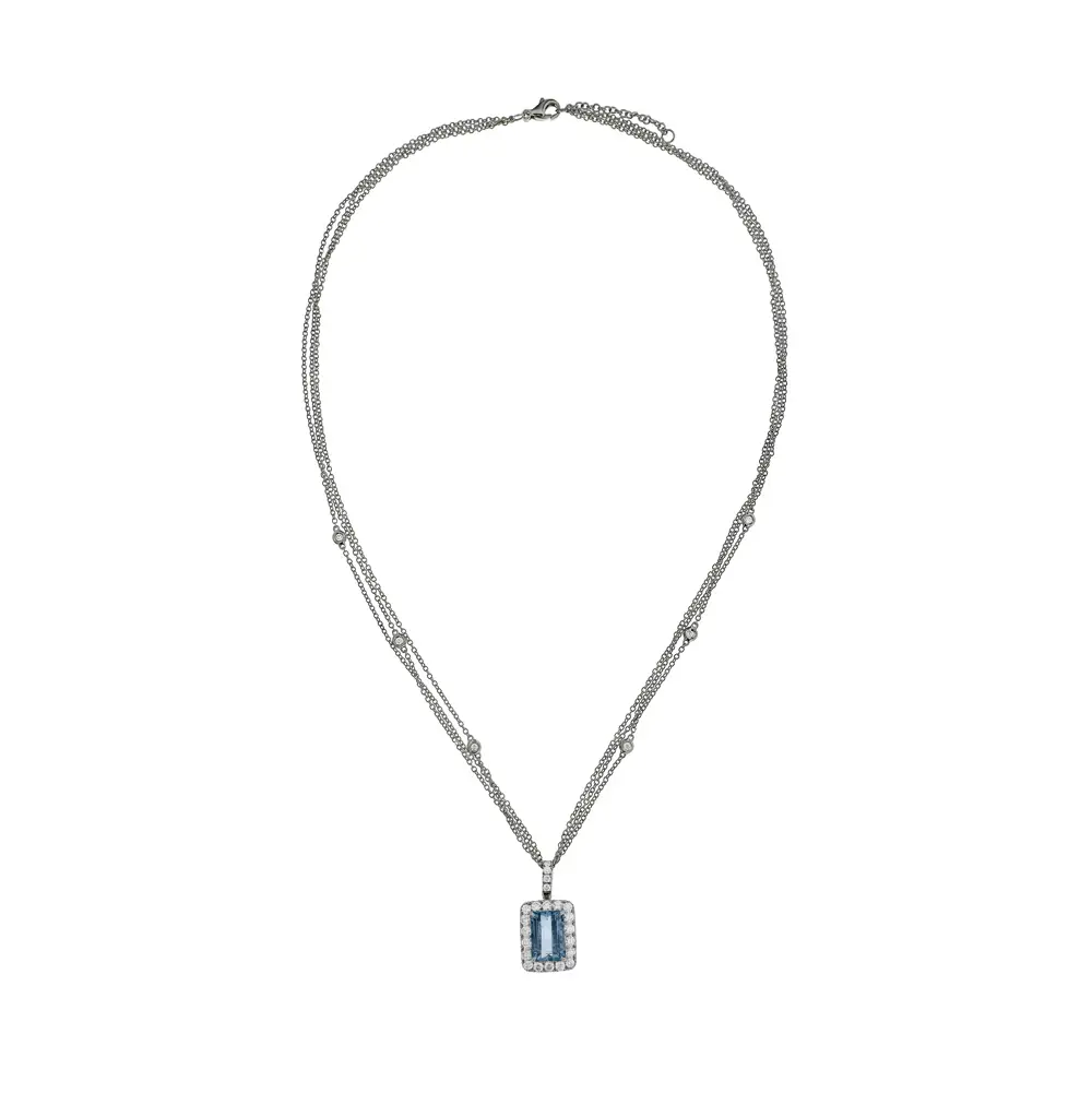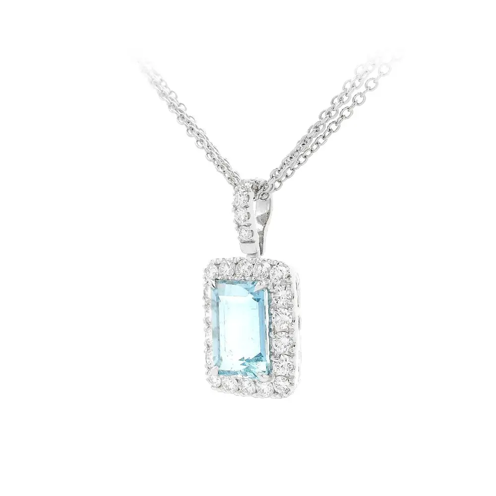 Zářivý Akvamarín Obklopený Diamanty v Luxusním Šperku