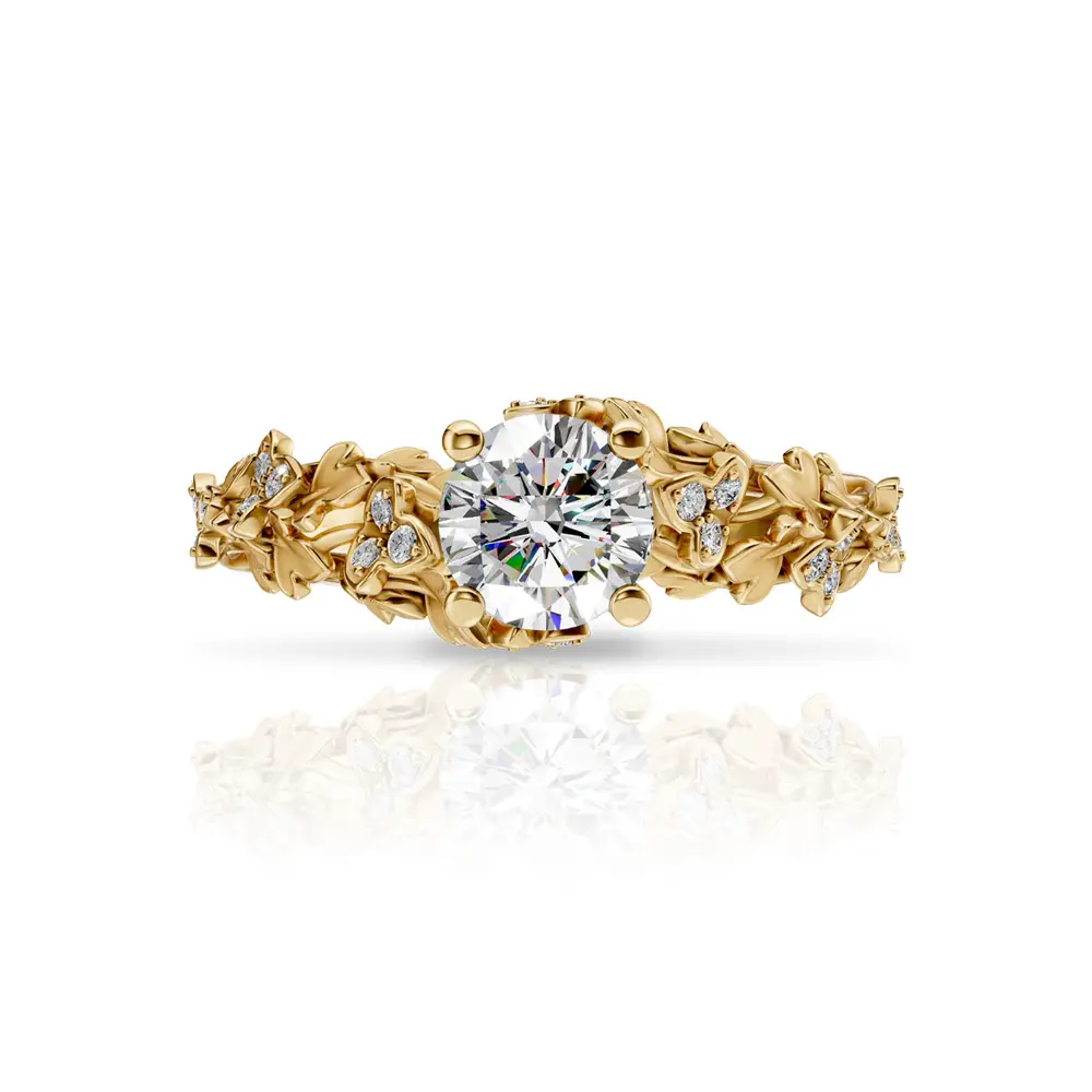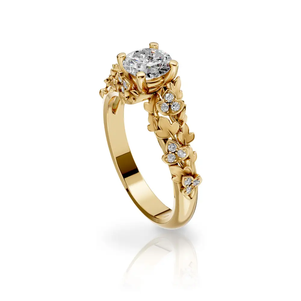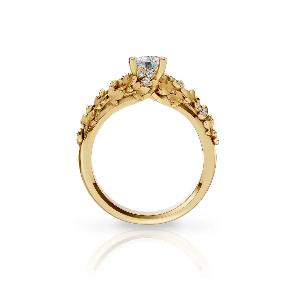 Carrera y Carrera Juliet zásnubní prsten od Carrera y Carrera představuje precizně zpracovaný luxusní šperk navržený s důrazem na čistotu formy a maximální zvýraznění centrálního diamantu. Prsten je vyroben z 18kt žlutého a bílého zlata, které vytváří elegantní kontrast a podporuje optickou brilanci kamene. Dominantním prvkem je centrální diamant o hmotnosti 0,70 ct, zasazený tak, aby umožňoval maximální průchod světla.