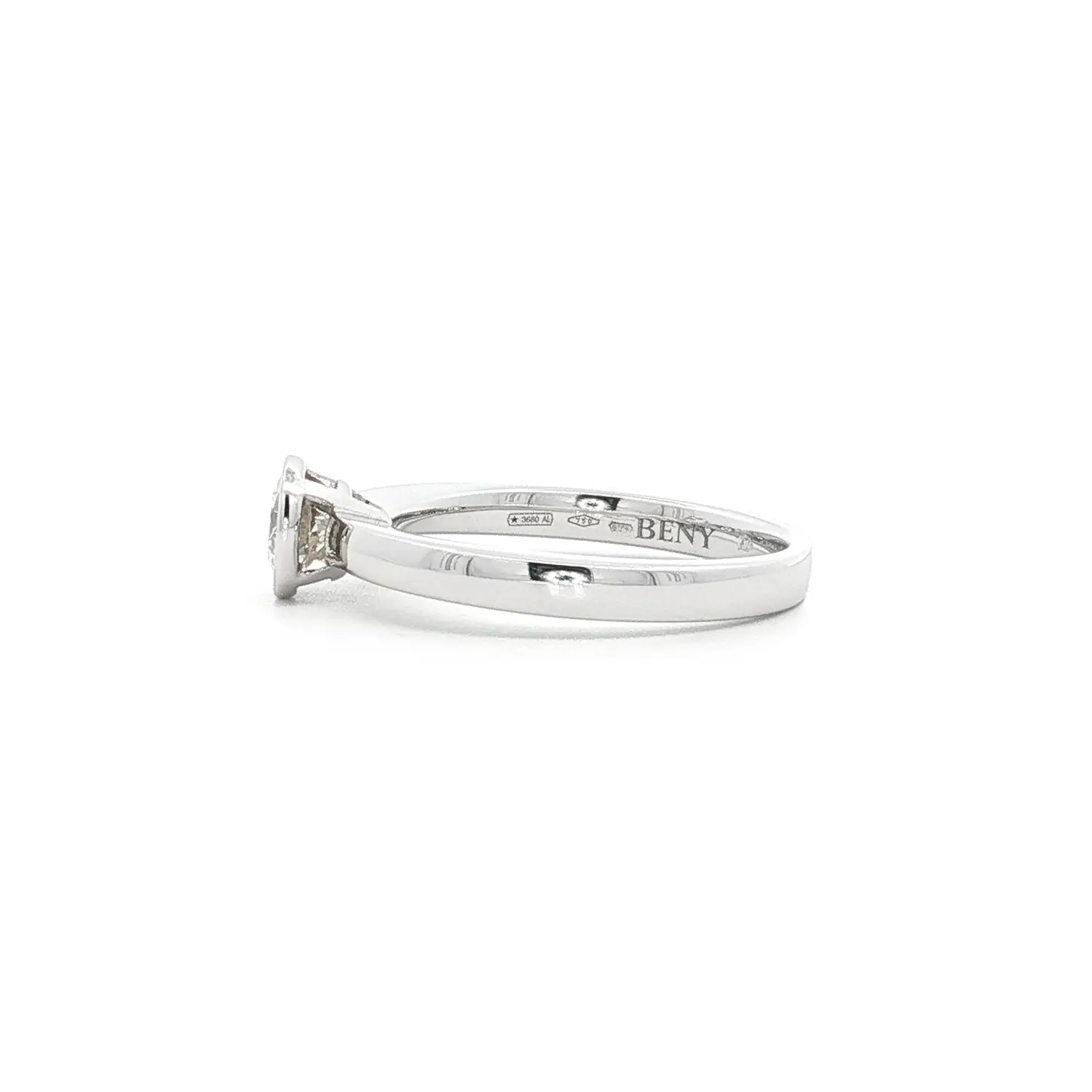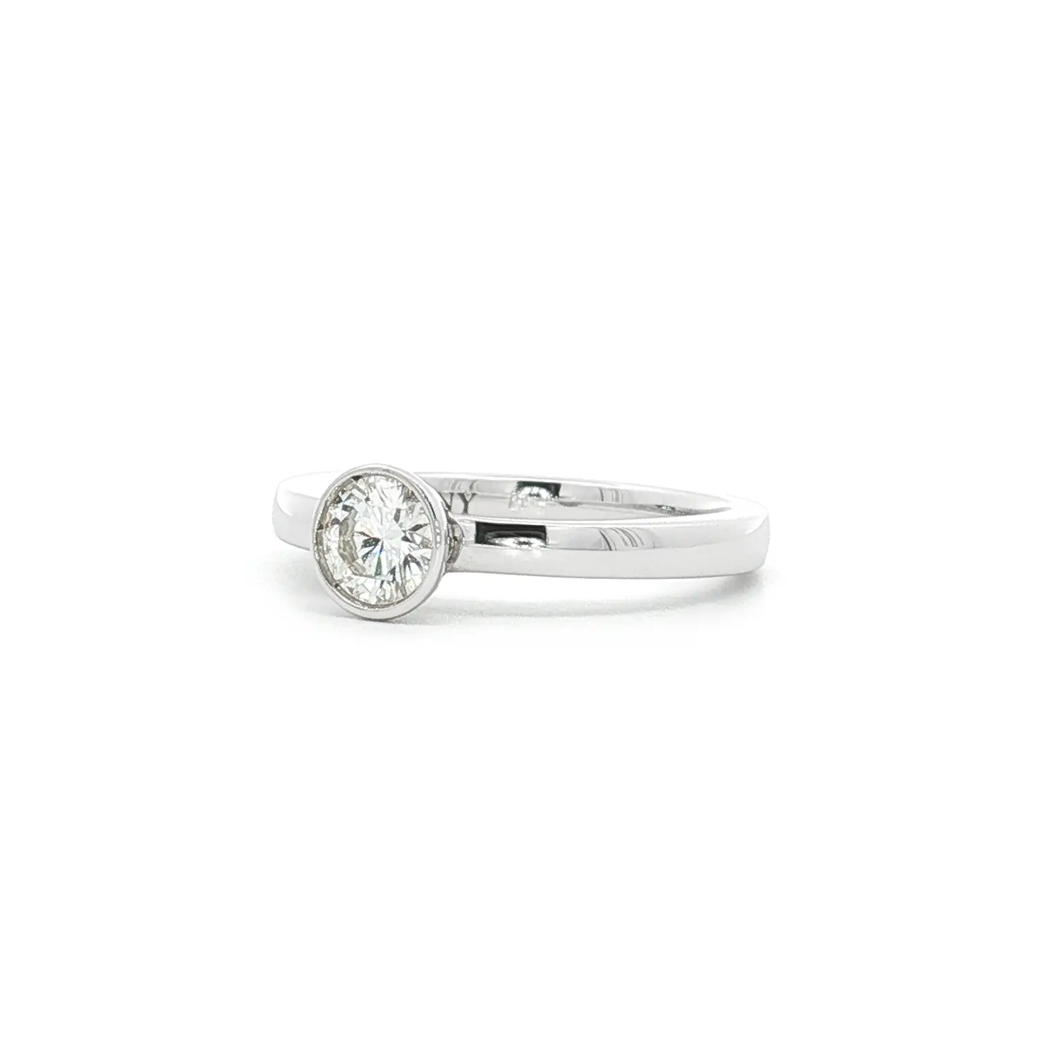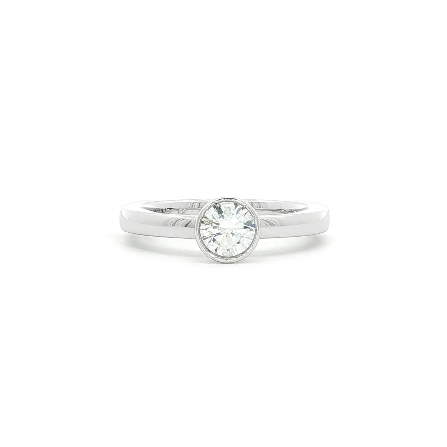 Tento zásnubní prsten z bílého zlata s diamantem o váze 0,52 karátu představuje dokonalou rovnováhu mezi minimalismem, elegancí a nadčasovou krásou. Centrální briliantově broušený diamant je zasazen do hladké obruby, která jej chrání a zároveň umožňuje naplno vyniknout jeho jiskřivému lesku. Jednoduchý, čistý design zvýrazňuje kvalitu kamene a jeho přirozený půvab, čímž dává vyniknout samotné symbolice zásnub.