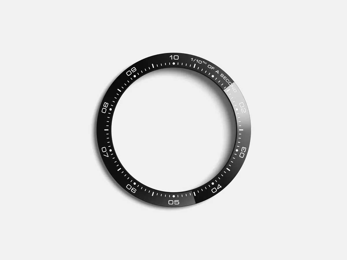 Elegantní bílý analogový ciferník nese tři subciferníky a klasické ručičky, které zajišťují perfektní čitelnost. Ciferník doplňuje precizně vypracovaný chronograf a praktická datumovka, která je nenápadně zakomponovaná do designu. Výraznou součástí vzhledu hodinek je také černá keramická luneta s tachymetrickou stupnicí, která podtrhuje sportovní charakter modelu a je zároveň mimořádně odolná proti opotřebení.