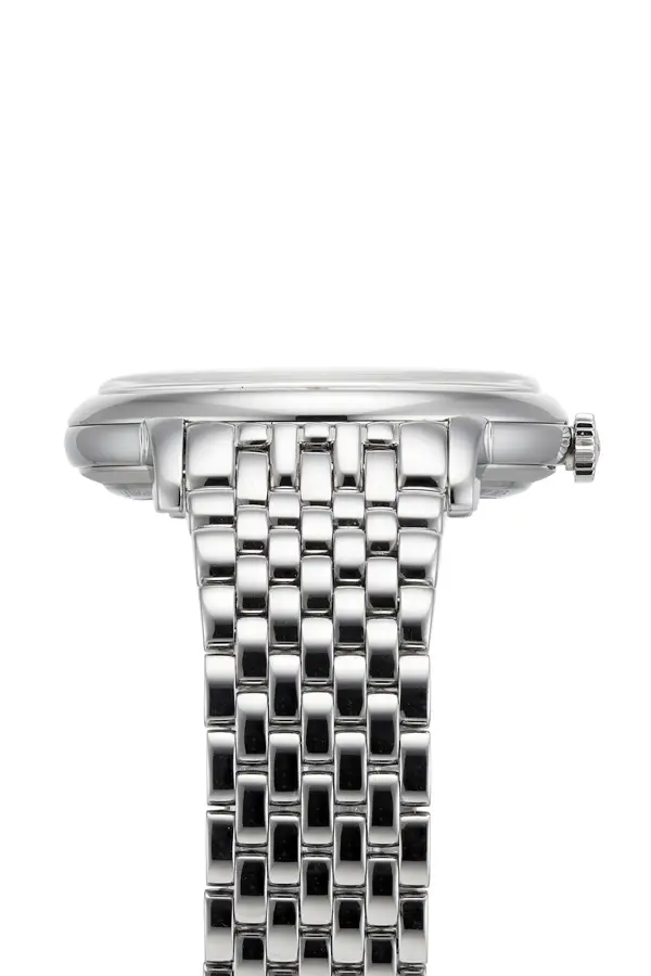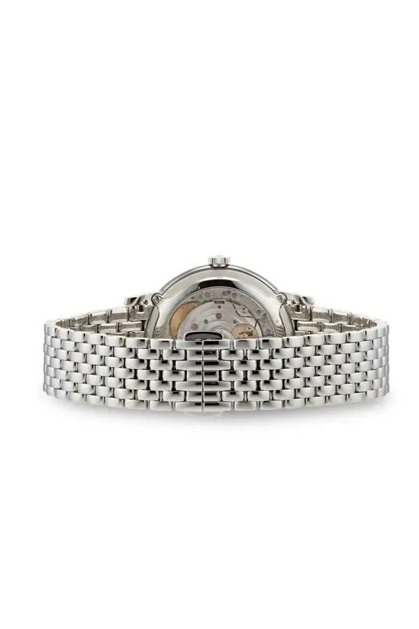 Luxusní dámské hodinky Zenith sází na jednoduchý design. Na perleťovém ciferníku je nejvýraznějším prvkem ukazatel měsíční fáze a jemně doplňuje eleganci římských čísel. Celé pouzdro je tenké, 36 mm velké a stejně jako pásek je vyrobeno z ocele. Ciferník chrání odolné safírové sklo, které se jen tak nepoškrábe.