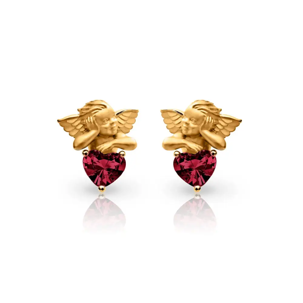 Hlavními drahokamy náušnic jsou 2 přírodní červené granáty v tvaru srdce (Heart), které dodávají šperku teplý a emocionální akcent. Každý granát vysoce kontrastuje se zlatem a zdůrazňuje designový záměr kolekce My Angel.