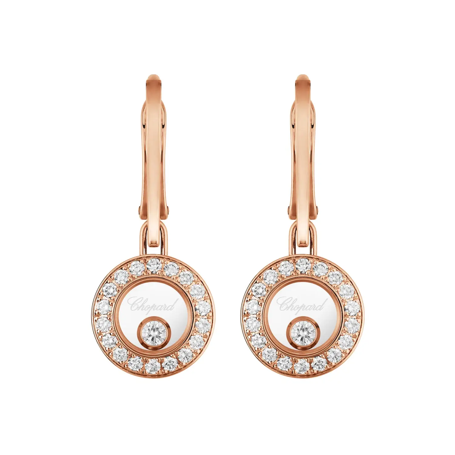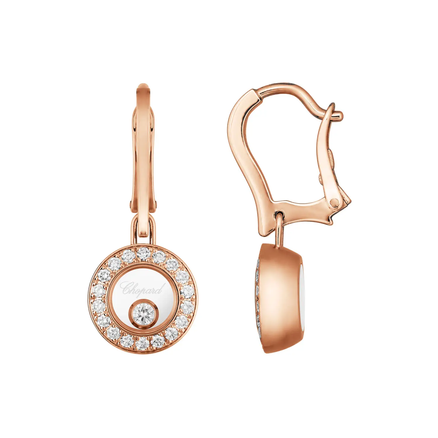 Náušnice Chopard Happy Diamonds Icons 83A017-5401 vyzařují jedinečný půvab a radost z pohybu, které jsou charakteristické pro ikonickou kolekci Happy Diamonds. Vyrobeny z 18k etického růžového zlata, zdobeny brilianty o celkové hmotnosti přibližně 0,36 ct, z nichž část se volně pohybuje mezi dvěma safírovými sklíčky – symbol svobody a světla.
