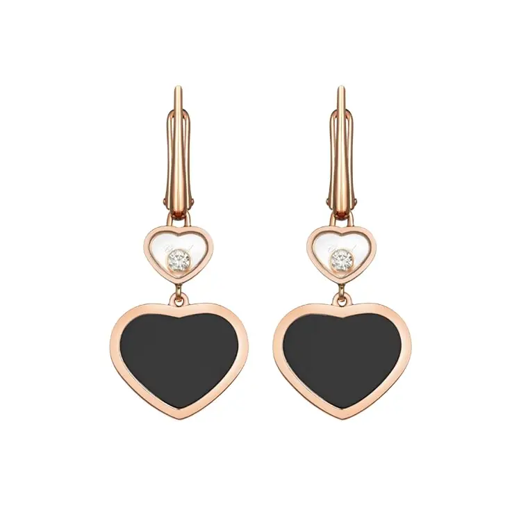 Centrem kompozice je přírodní onyx (2 ks) ve tvaru srdce / Heart, v hluboké černé barvě (původ: přírodní), který vytváří elegantní kontrast k růžovému zlatu. Jiskru dodávají přírodní diamanty 0,10 ct (2 ks) v kulatém brusu / Round, bílé barvy, s čistotou IF–VVS a barvou F–G. Precizní osazení zvýrazňuje brilanci kamenů i čistotu linií – výsledkem jsou nadčasové, ženské a výrazné náušnice, které se snadno kombinují s dalšími klenoty Chopard.