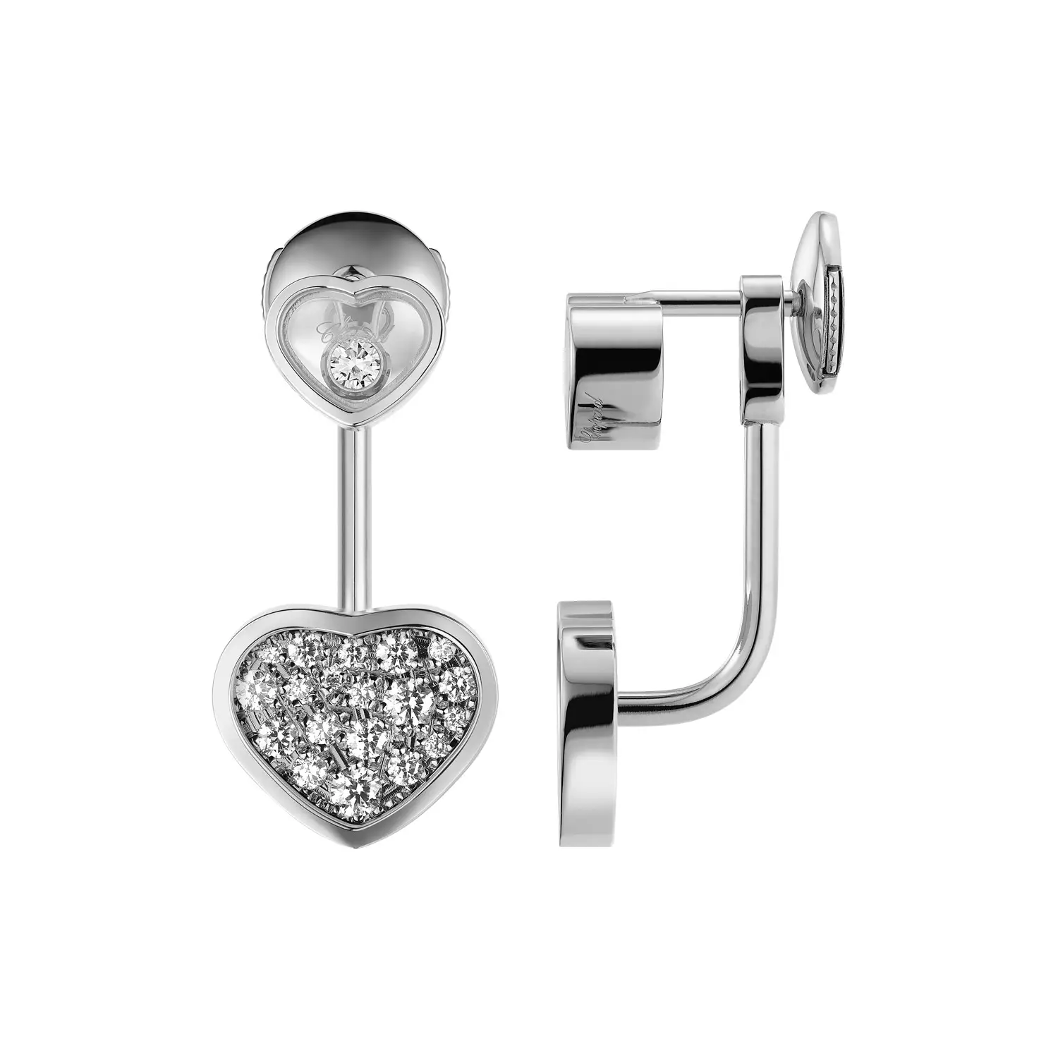Náušnice Chopard Happy Hearts 83A082-1009 představují ikonickou eleganci značky Chopard v její nejčistší podobě. Vyrobeny z 18k bílého zlata, zdobeny brilianty o celkové hmotnosti přibližně 0,44 ct, zasazenými do srdíčkových motivů – symbolu lásky, radosti a štěstí, který charakterizuje kolekci Happy Hearts.