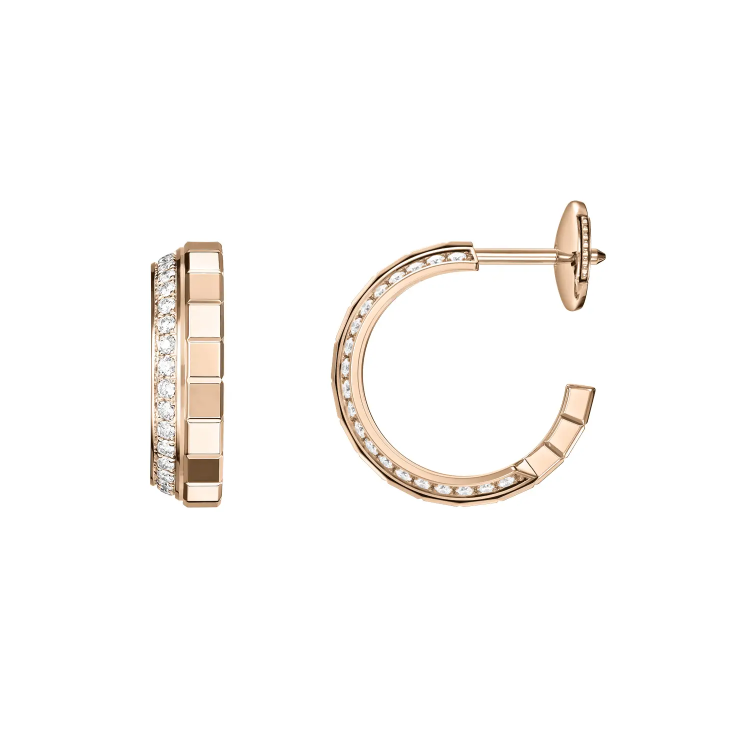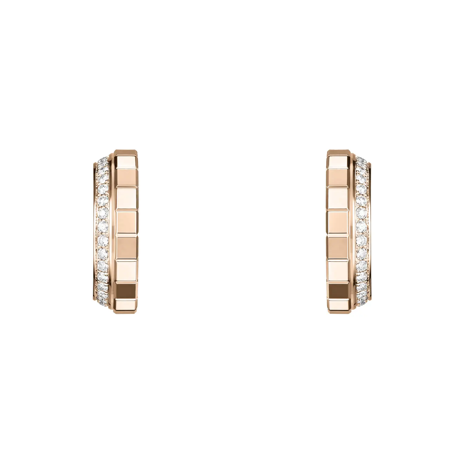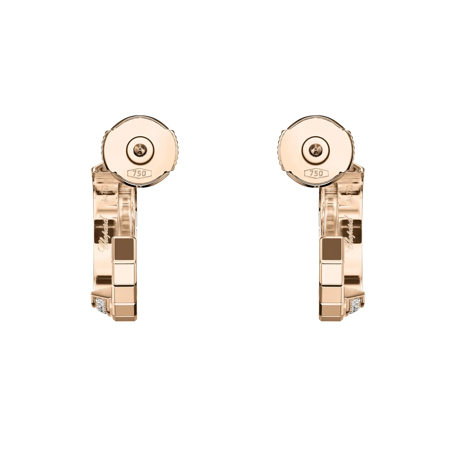 Elegantní zlaté náušnice Chopard Ice Cube 837008-5001 vynikají moderním geometrickým designem inspirovaným čistotou ledových krychlí. Každá facetovaná ploška z 18kt etického růžového zlata zachycuje světlo s maximální intenzitou, zatímco diamanty o celkové hmotnosti přibližně 0,24 ct dodávají šperku sofistikovaný třpyt a výrazný luxusní charakter.