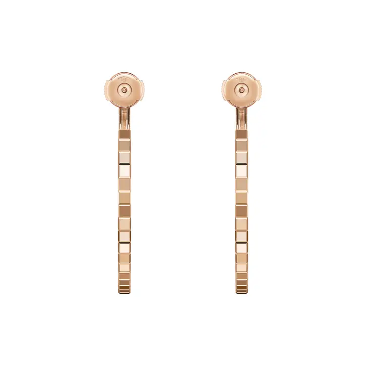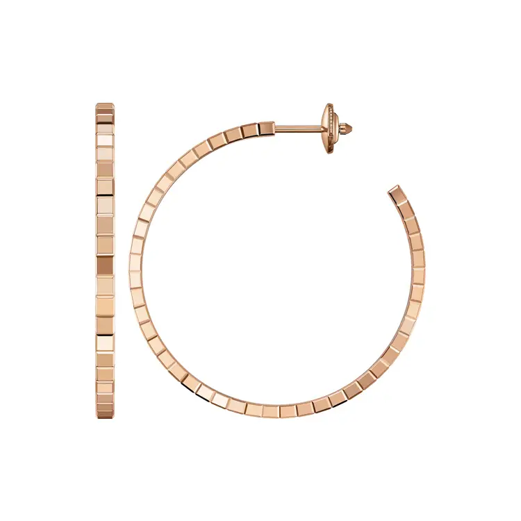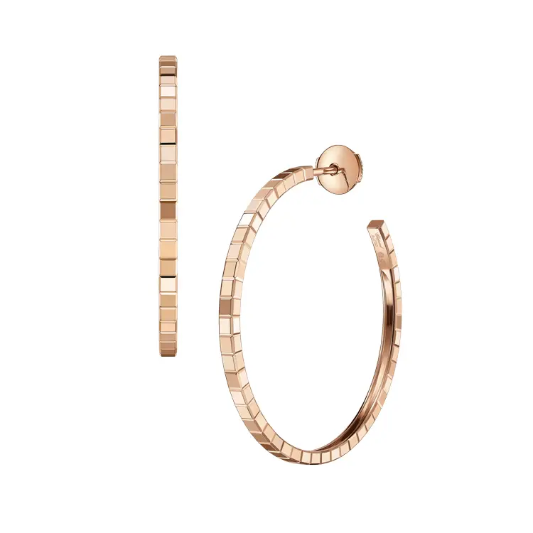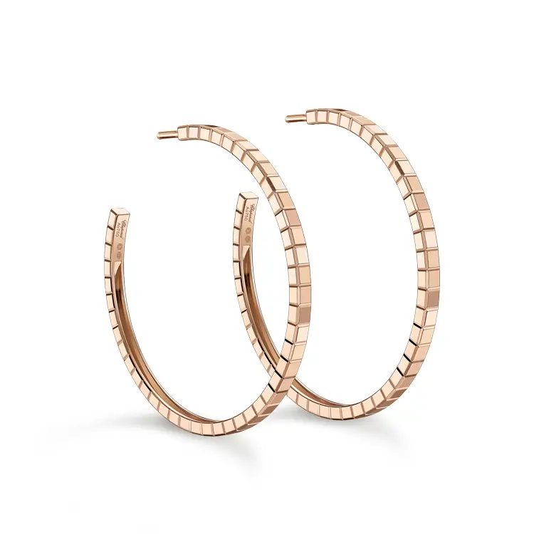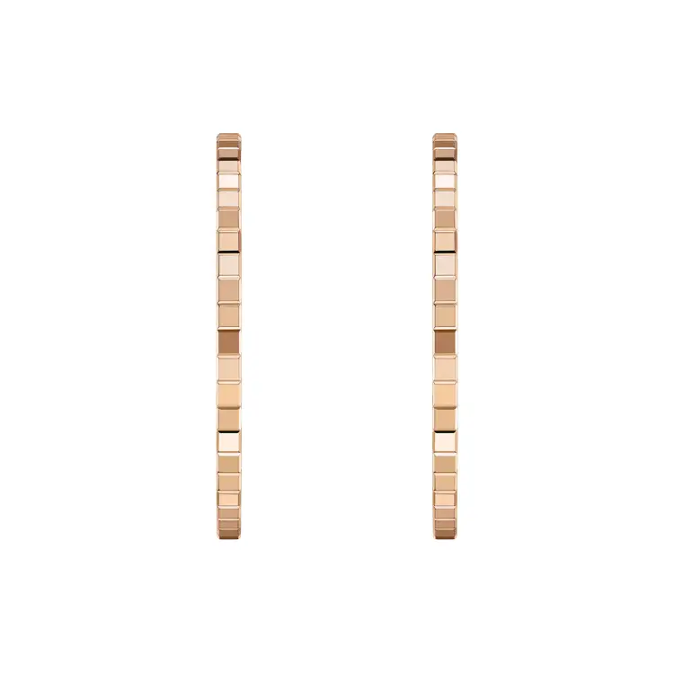 Chopard Ice Cube Náušnice 837702-5007 představují mistrovské spojení minimalistické elegance a luxusního šperkařství. Tyto kruhové náušnice jsou vyrobeny z 18kt růžového zlata (750/1000) s lesklým povrchem, jehož teplé tóny naznačují jemnost a šarm, zatímco design nazvaný „Ice Cube“ evokuje moderní čistotu a rafinovanou geometrii.