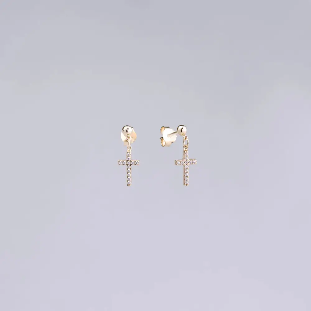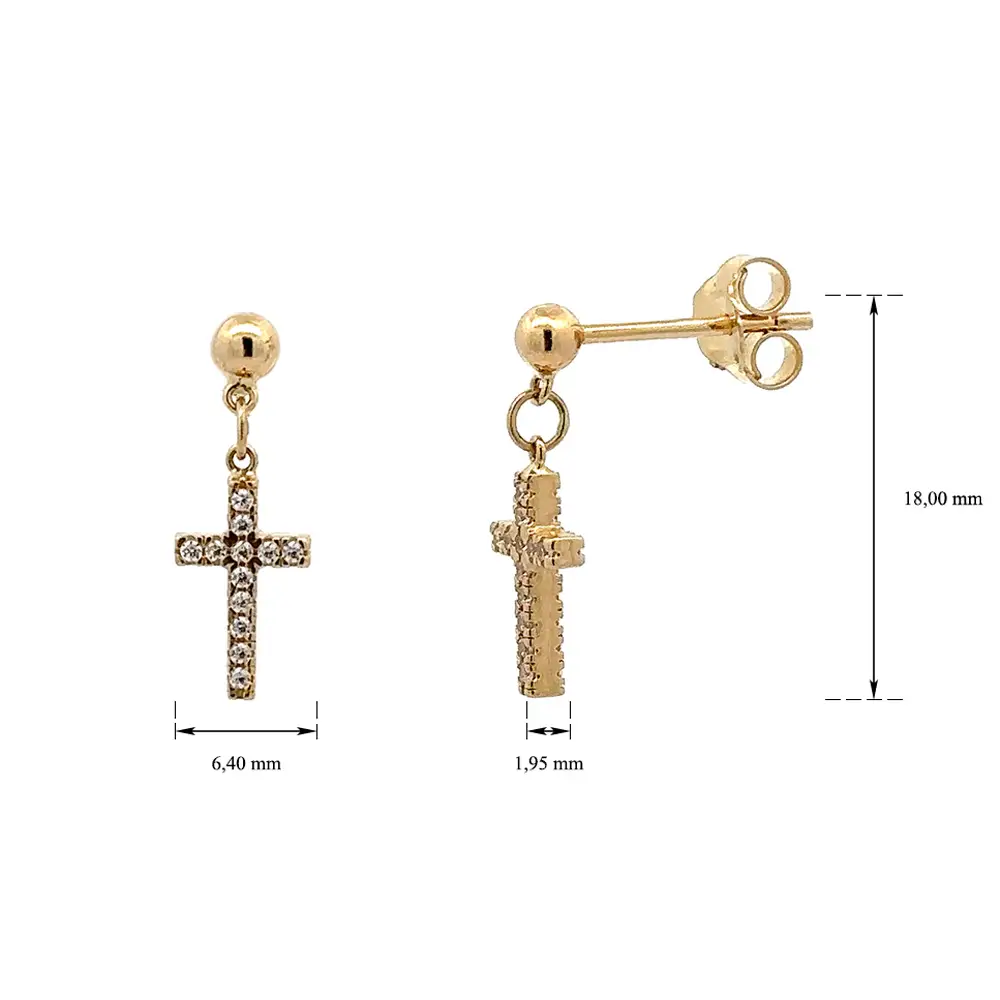 Zlaté Náušnice Kříž se Zirkony