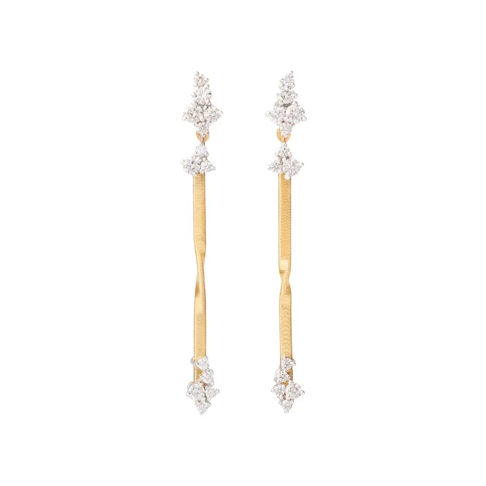 Lehká visací silueta a vyvážené proporce dělají z těchto náušnic ideální doplněk pro slavnostní příležitosti i pro stylové každodenní nošení. Mohou být skvěle kombinovány s ostatními šperky Marco Bicego, zejména s prsteny nebo náramky z linie Marrakech, čímž vytvoří harmonický, elegantní celek.