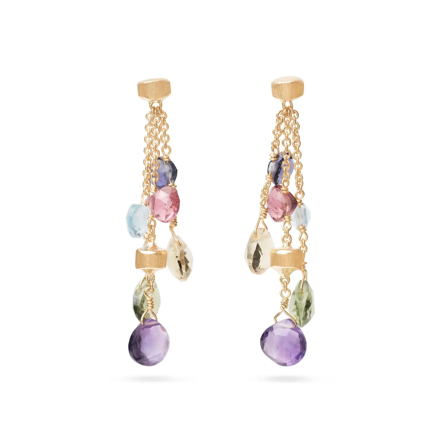 Model OB915 MIX01 Y 02 působí díky své lehké konstrukci velmi elegantně a přirozeně při nošení. Spojení 18kt zlata, pestré palety přírodních drahých kamenů a precizního italského řemesla Marco Bicego činí z těchto náušnic výrazný, ale zároveň nadčasový šperk vhodný pro každodenní nošení i jako exkluzivní dárek.