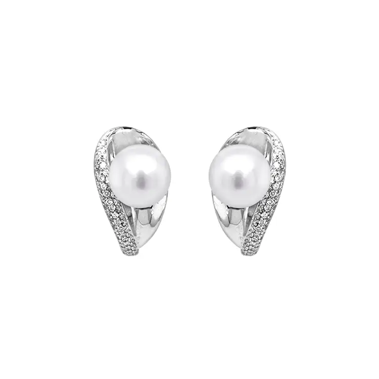 Zlaté Náušnice Přírodní Perly a Diamanty
