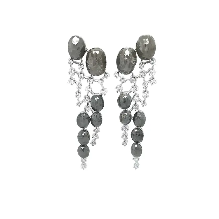 Zlaté Náušnice s Šedými a Bílými Diamanty