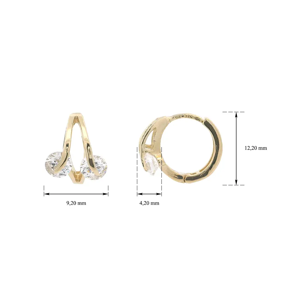Tyto elegantní náušnice ze 14karátového žlutého zlata (585/1000) zaujmou jemným, ale rafinovaným designem, který propojuje klasické linie s moderním zpracováním. Čtyři zářivé zirkony jsou precizně zasazeny do ladné křivky zlatého rámu a vytvářejí dojem lehkosti a pohybu. Jejich brilantní třpyt přirozeně přitahuje pozornost a krásně podtrhuje ženské rysy.