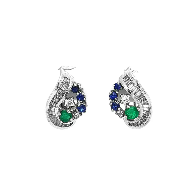 Zlaté Náušnice se Smaragdy, Safíry a Diamanty