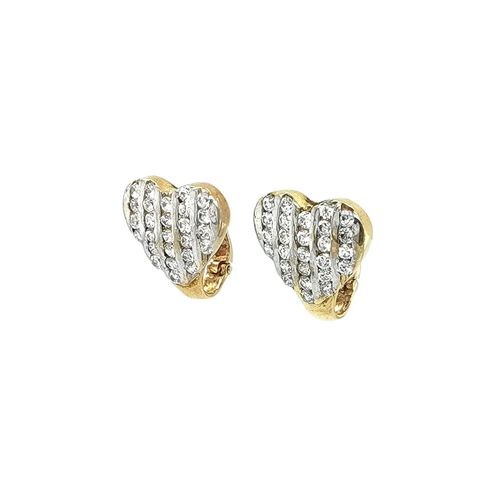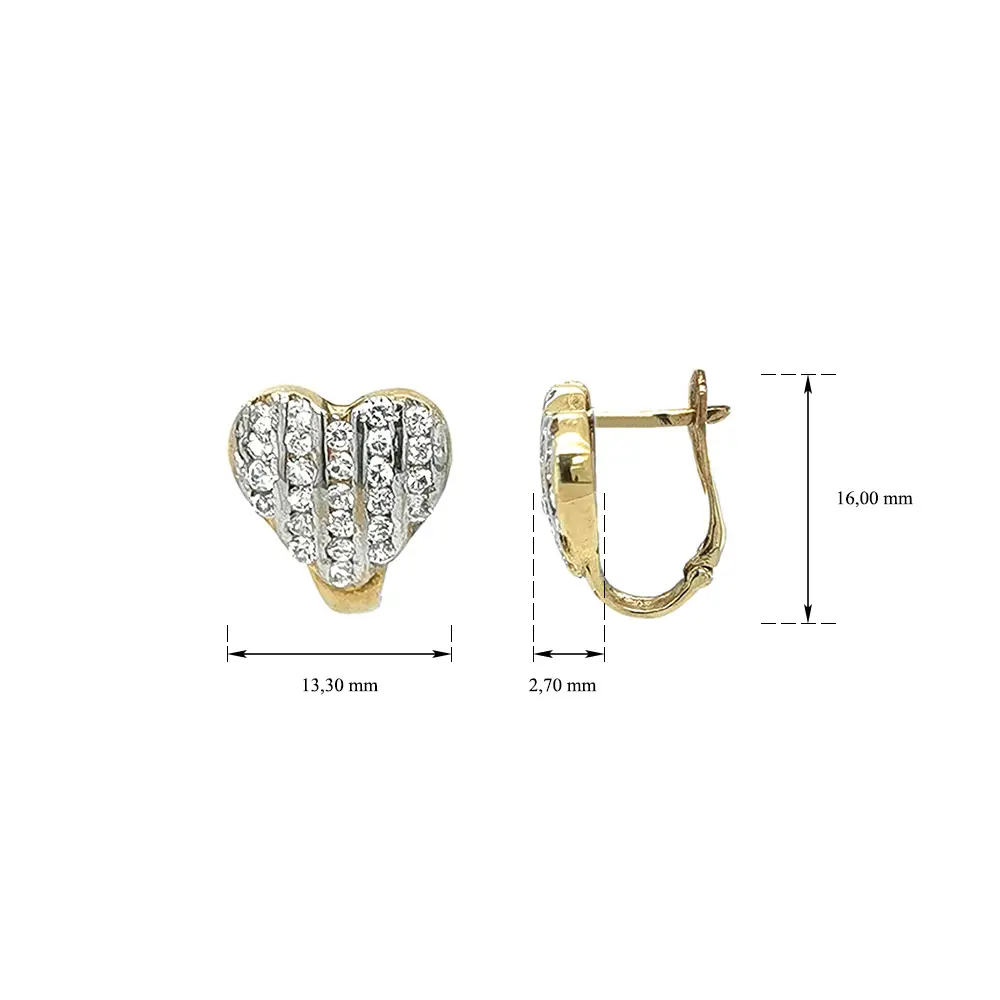 Zlaté Náušnice ve Tvaru Srdce Zdobené Drobnými Kamínky