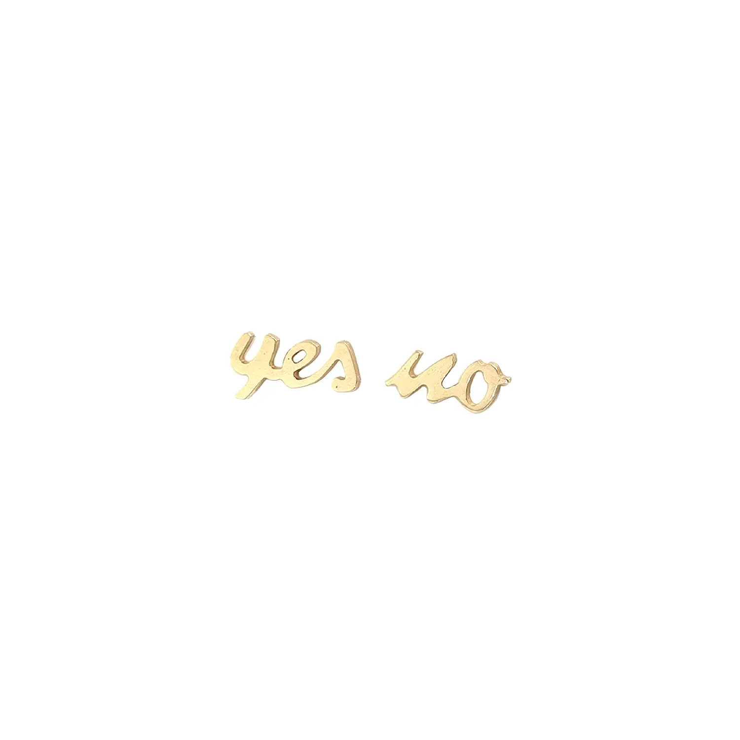 Zlaté náušnice „Yes / No“ představují hravý a originální šperk, který zaujme svou minimalistickou podobou i neotřelým konceptem. Vyrobené z kvalitního žlutého zlata, působí jemně a zároveň moderně díky elegantně psanému písmu, které vytváří stylový a výrazný detail. Asymetrické provedení dodává náušnicím osobitost a umožňuje nositelce vyjádřit náladu či postoj nenápadným, ale efektním způsobem.
