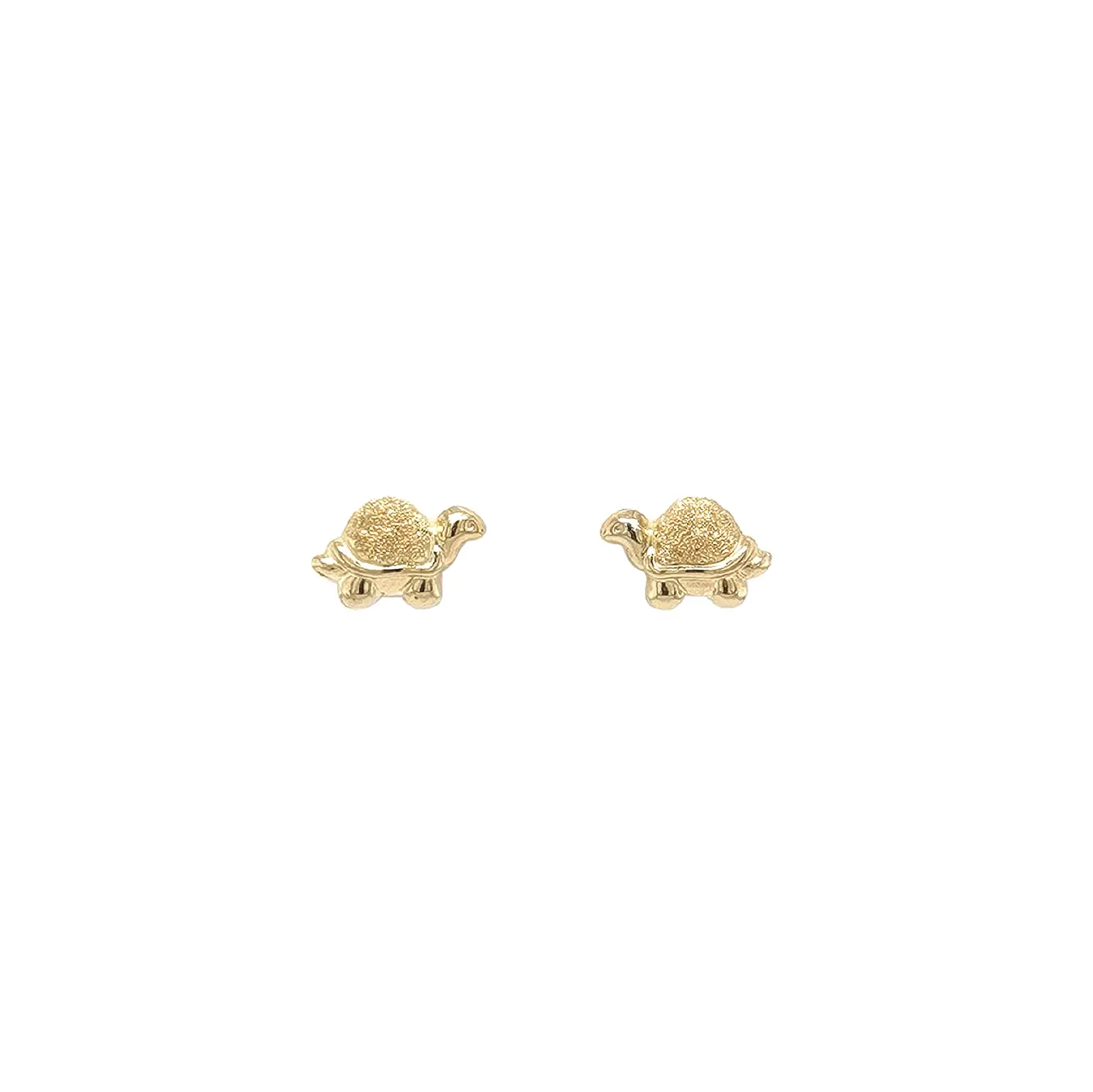 Tyto jemné zlaté náušnice ve tvaru želviček zaujmou svým roztomilým designem a detailním zpracováním. Lesklý povrch v kombinaci s jemně strukturovaným krunýřem vytváří elegantní a hravý šperk vhodný pro každodenní nošení i jako milý dárek. Díky pohodlnému puzetovému zapínání a pevnému provedení se náušnice snadno nosí a krásně doplní jakýkoli styl. Ideální volba pro milovníky jemných zlatých šperků a symboliky dlouhověkosti a štěstí.