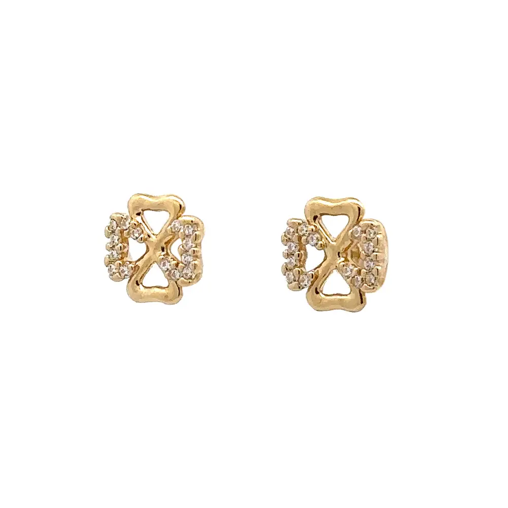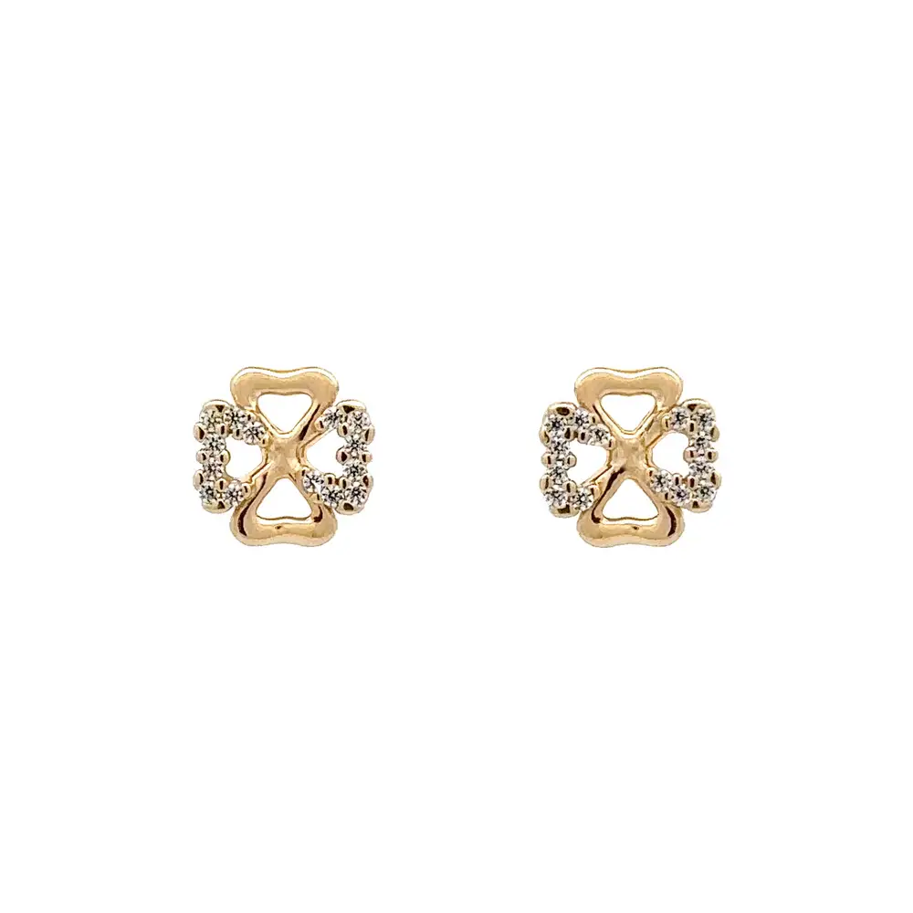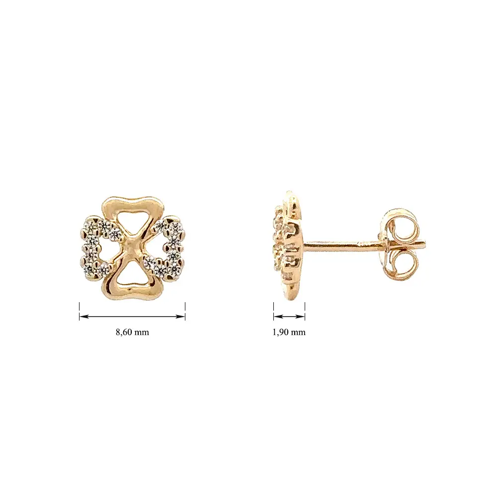 Zlaté Peckové Náušnice Čtyřlístek se Zirkony