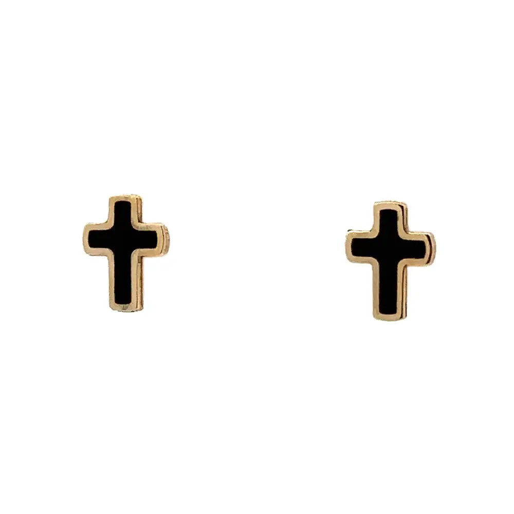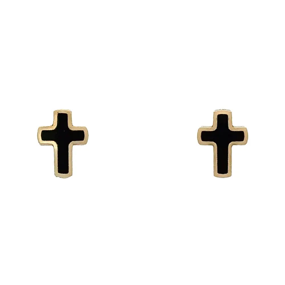 Zlaté Peckové Náušnice Kříž se Smaltem