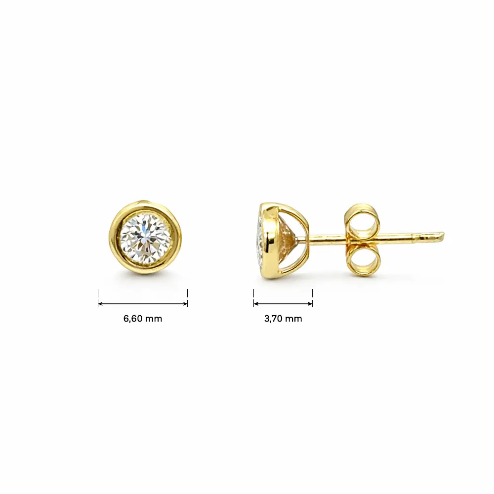 Tyto zlaté peckové náušnice s čirým zirkonem představují nadčasový šperk, který vyniká svou čistotou a jemnou elegancí. Precizně zasazený zirkon krásně odráží světlo a dodává náušnicím decentní třpyt vhodný pro každodenní nošení i slavnostní příležitosti.