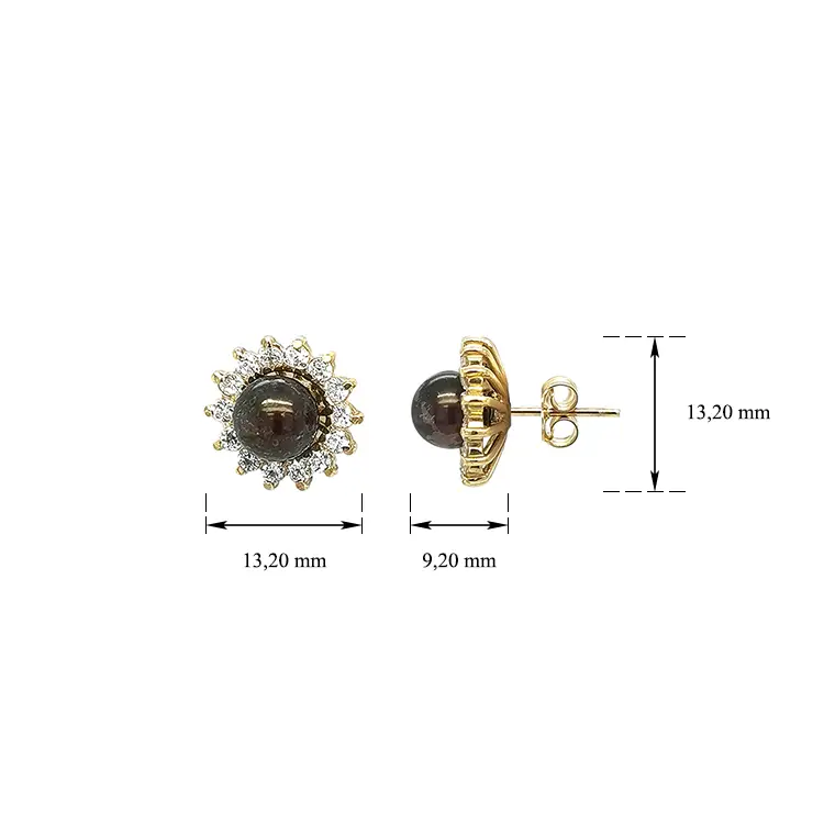 Zlaté Peckové Náušnice s Hnědou Perlou