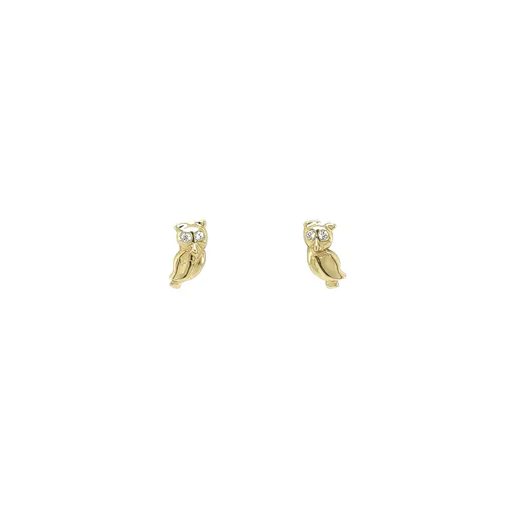 Zlaté Peckové Náušnice Sovy se Zirkony