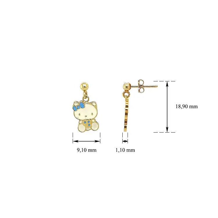 Zlaté Visací Náušnice Hallo Kitty