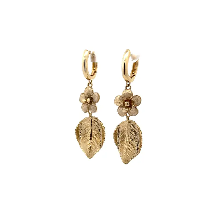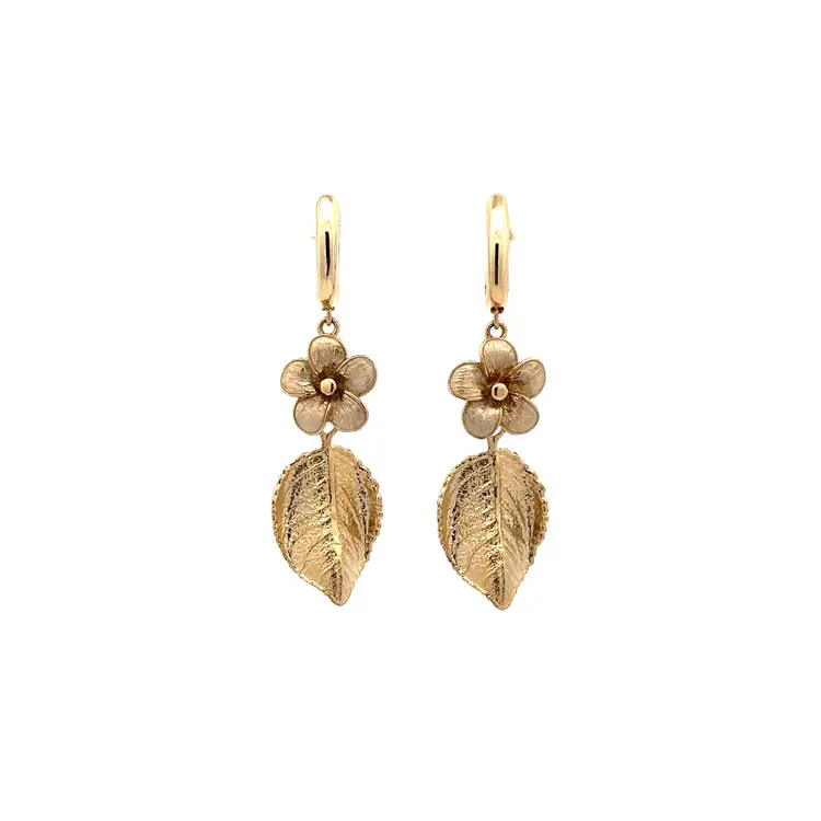 Zlaté Visací Náušnice Inspirované Přírodou – Květ a List