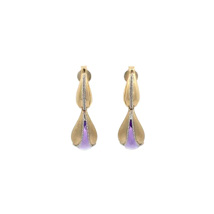 Zlaté Visací Náušnice s Fialovým Kamenem