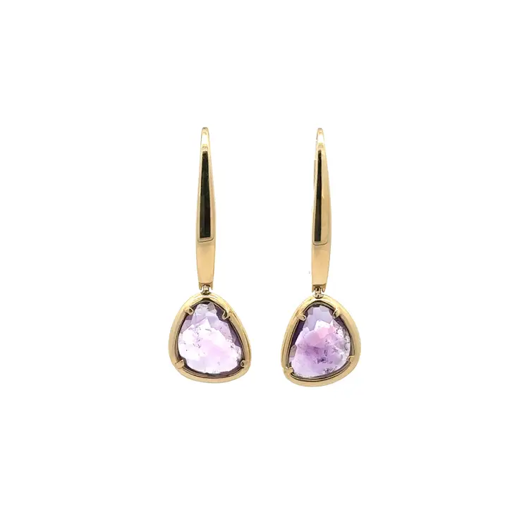 Zlaté Visací Náušnice s Fialovým Kamenem