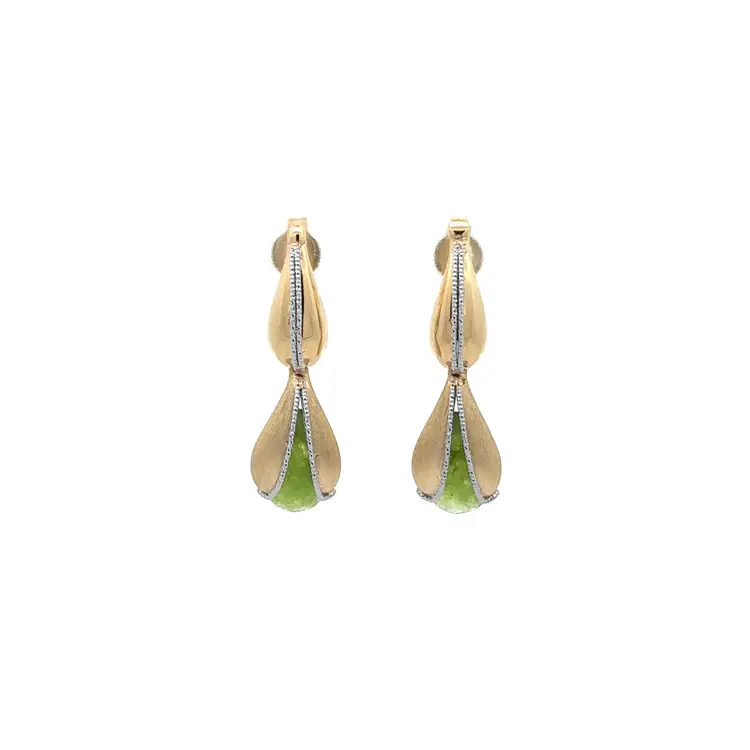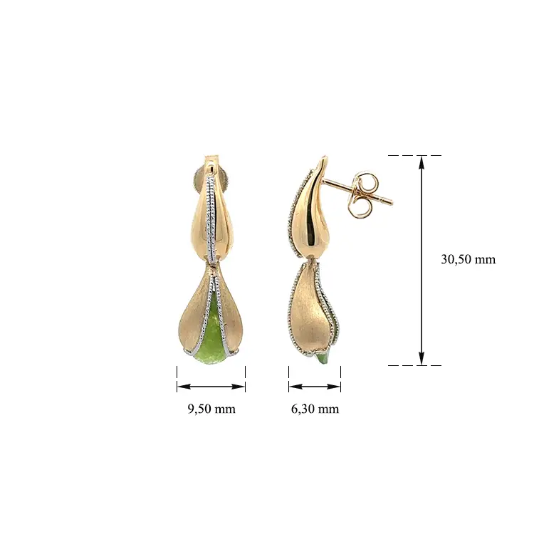 Zlaté Visací Náušnice se Zeleným Kamenem