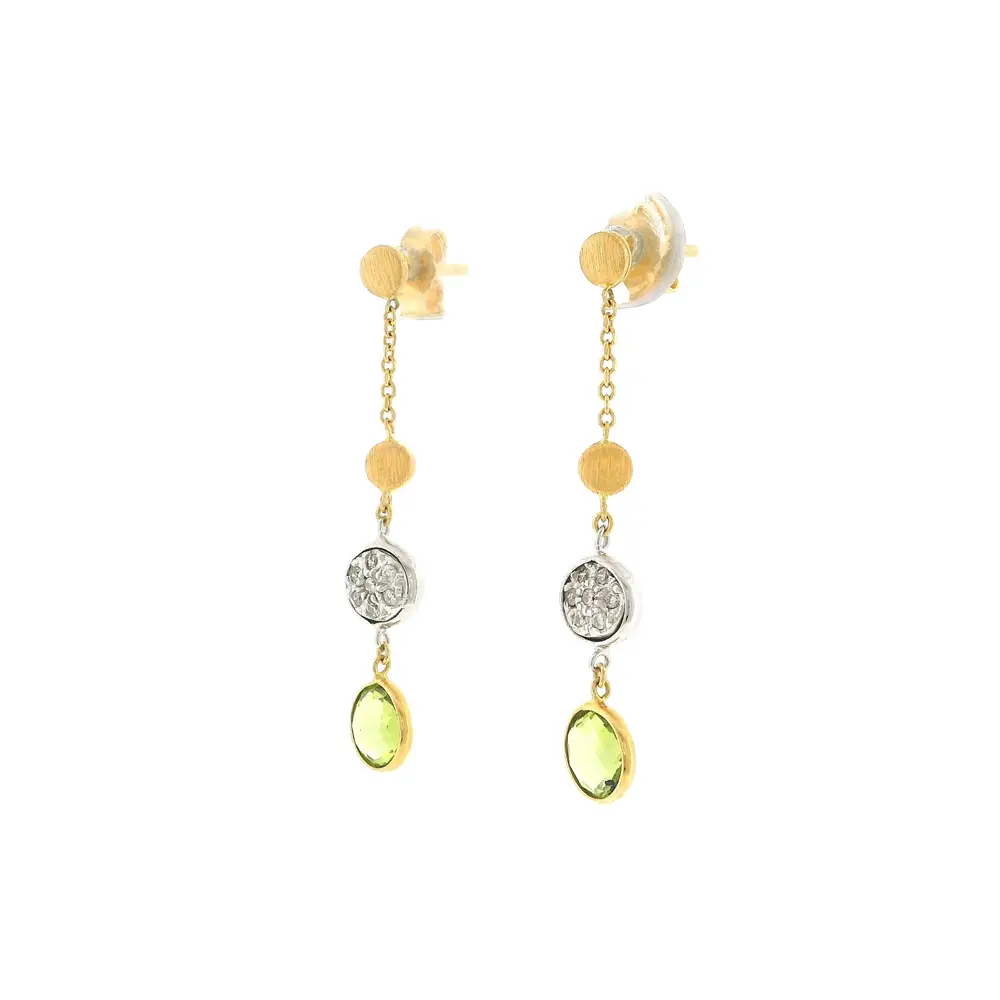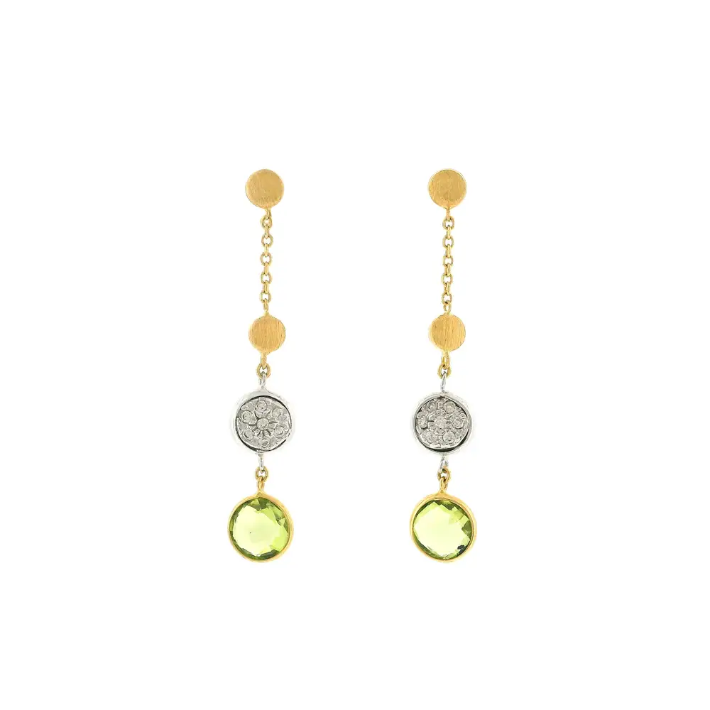 Zlaté visací náušnice se zeleným kamenem a zirkony