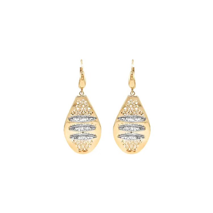 Zlaté VIsací Náušnice z Kominovaného Zlata