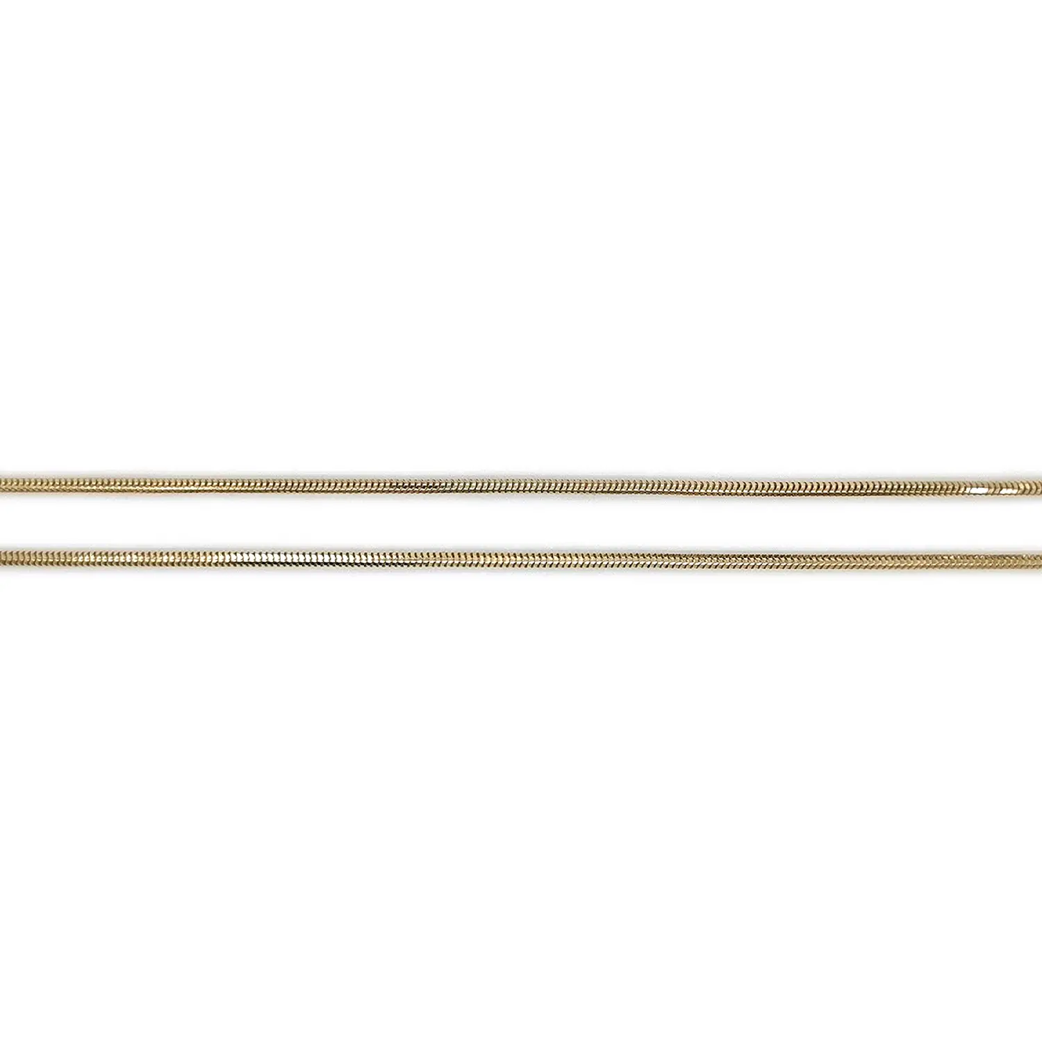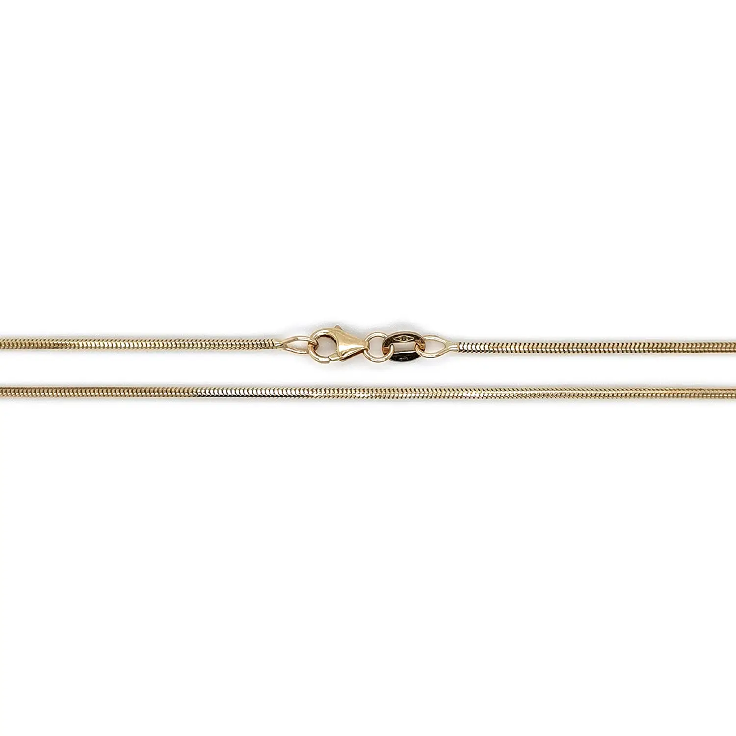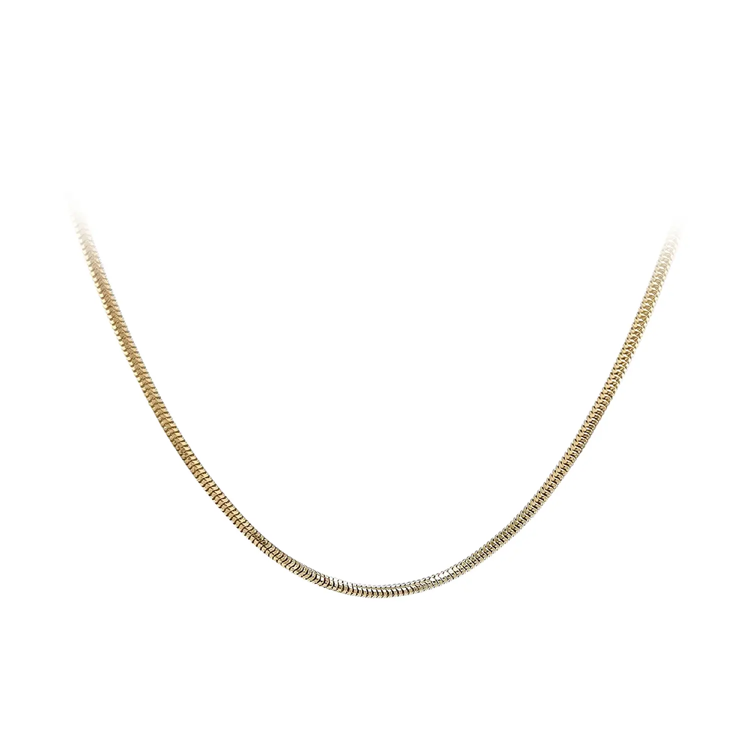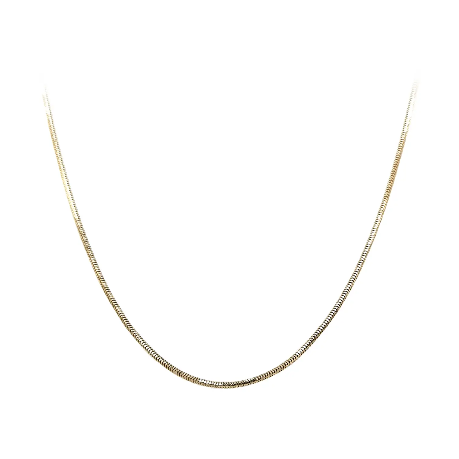 Zlatý hadí řetízek okouzlí svou hladkou, souvislou strukturou, která elegantně kopíruje linii krku a vytváří jemný, luxusní lesk. Díky specifickému hadímu propletení působí mimořádně měkce a komfortně při nošení, zatímco jeho čistý minimalistický design dodává outfitu moderní výraz. Subtilní šířka 1,20 mm podtrhuje jeho decentní estetiku bez ztráty vizuální přitažlivosti.