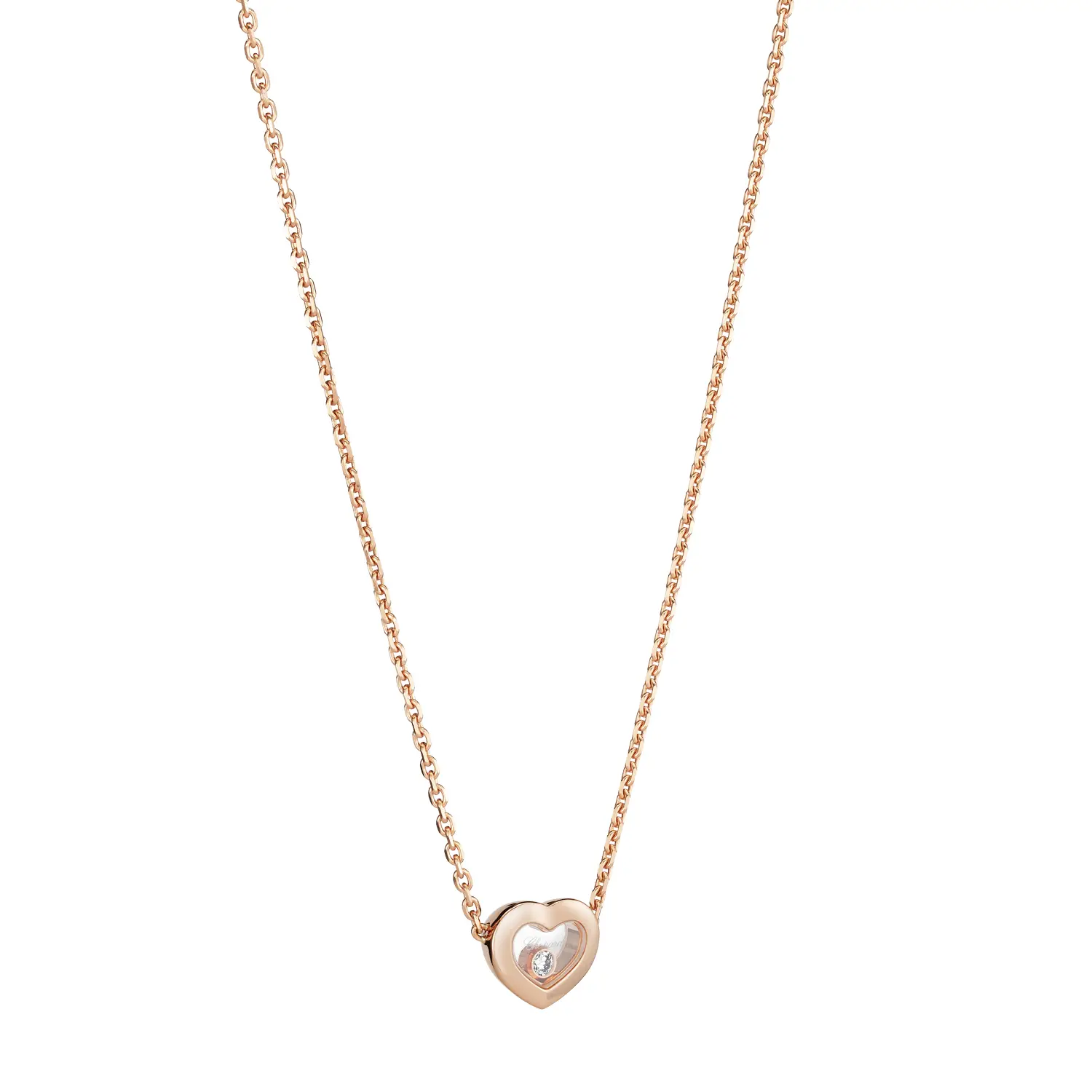 Náhrdelník Chopard Happy Diamonds Icons 81A054-5001 je ztělesněním jemnosti, světla a pohybu – tří hodnot, které definují ikonickou kolekci Happy Diamonds. Vyroben z 18karátového etického růžového zlata, zdobí jej volně pohybující se diamant o hmotnosti 0,05 ct, uzavřený mezi dvěma safírovými sklíčky. Tento charakteristický design vytváří dojem lehkosti a neustálého života, kdy každý pohyb přináší nový záblesk světla.