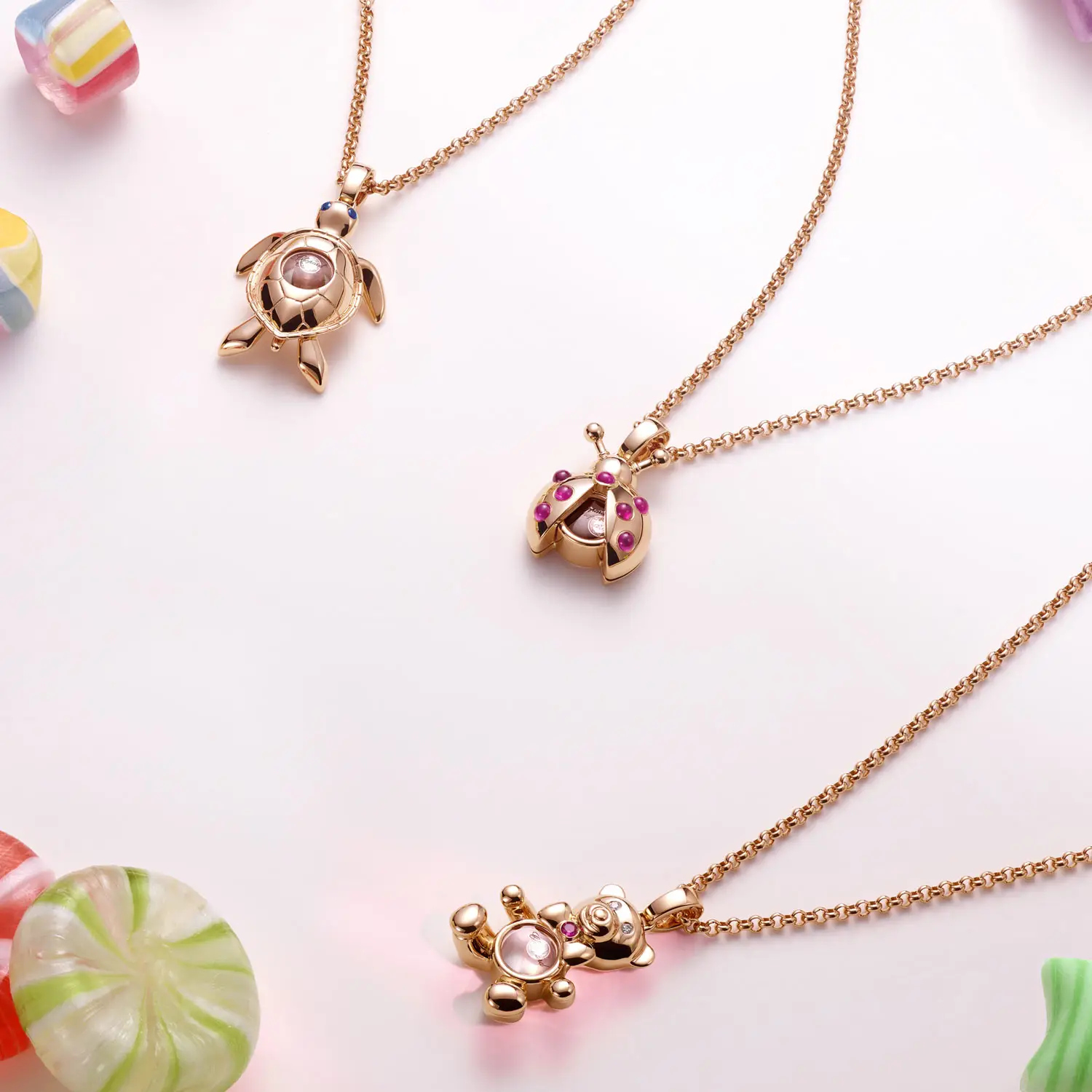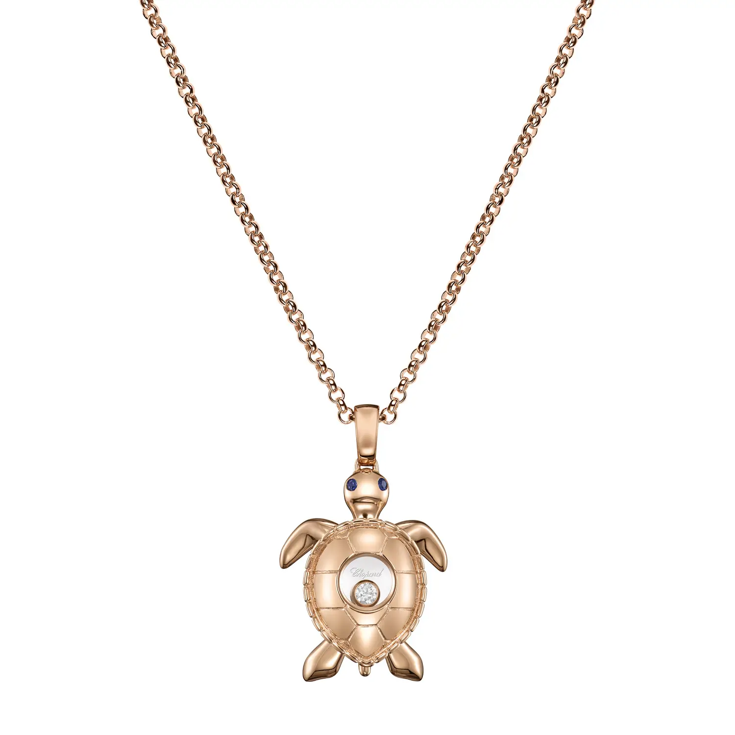 Přívěsek Chopard Happy Diamonds Turtle 79A187-5001 je okouzlujícím symbolem štěstí, dlouhověkosti a elegance, který spojuje hravost kolekce Happy Diamonds s jemnou estetikou značky Chopard. Vyroben z 18karátového etického růžového zlata, zdobí jej volně pohybující se diamant uzavřený mezi dvěma safírovými sklíčky – charakteristický prvek, který při každém pohybu zachycuje světlo a rozzáří přívěsek živou energií.