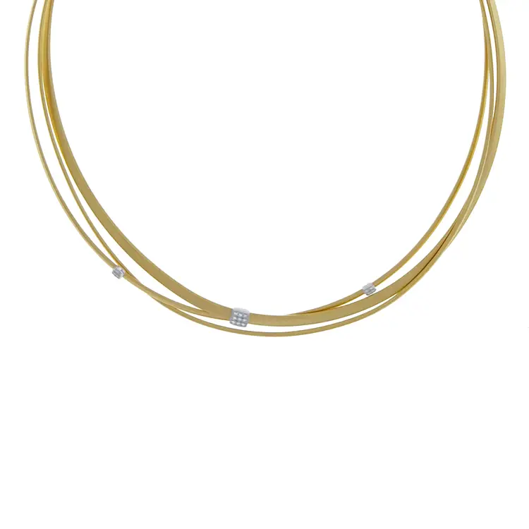 Charakteristickým znakem kolekce jsou pružné prameny z 18kt zlata, často v kombinaci s diamanty. Tyto víceřadé linie, vytvářené pomocí inovativní techniky, obepínají zápěstí či krk s přirozenou lehkostí a flexibilitou. Výsledkem je šperk, který působí jako sochařský objekt, a přesto se pohodlně nosí každý den.