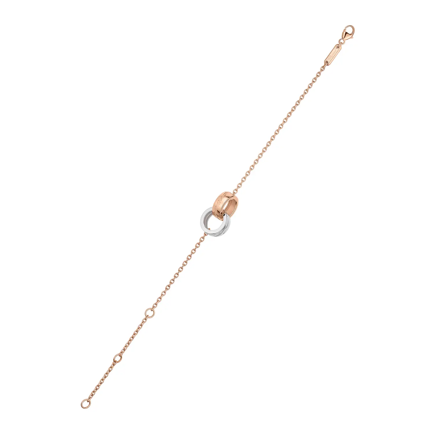 Tento elegantní náramek z kolekce Chopardissimo ztělesňuje charakteristický rukopis značky – harmonii tvarů, nadčasový design a jemný luxus. Vyrobený z kombinace 18 kt růžového a bílého zlata, působí vyváženě a sofistikovaně, zatímco plynulé linie a vyryté logo Chopard dodávají šperku osobitý výraz. Je to moderní interpretace klasického stylu s nádechem švýcarské preciznosti.