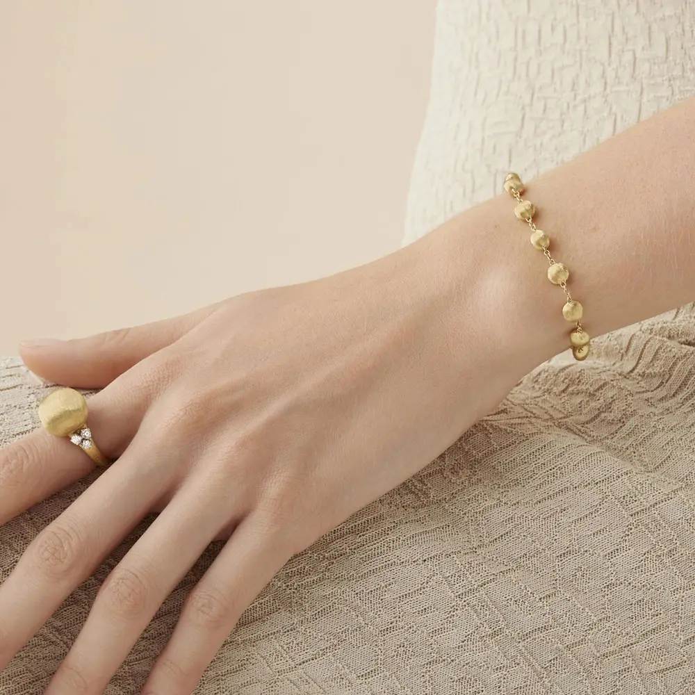 Kolekce Africa značky Marco Bicego je inspirována půvabem afrických krajin a smyslností přírody. Charakteristické kulaté tvary evokují hřejivé slunce, zlaté duny a nadčasovou energii, která se odráží v každém detailu šperku.