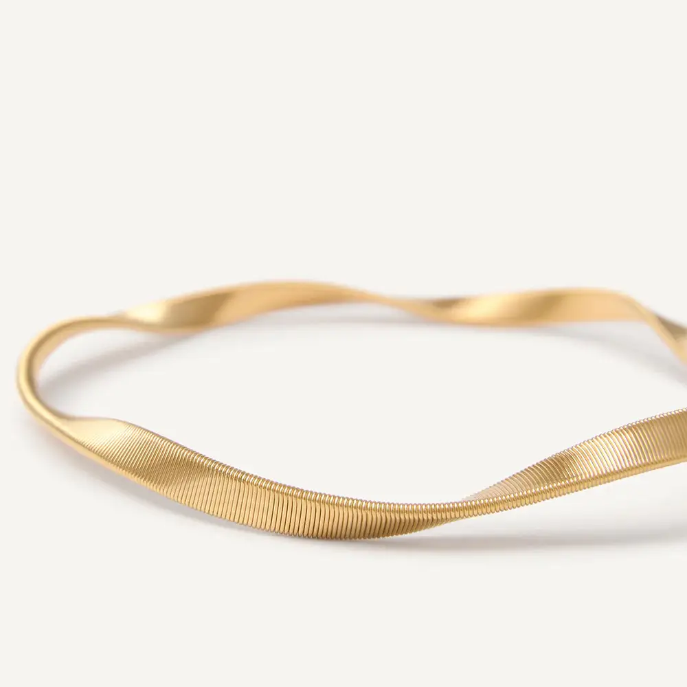Každý kousek kolekce je vytvořen z 18kt zlata a zdoben technikou ručně krouceného drátu, která je ikonickým podpisem značky Marco Bicego. Tento detail vytváří jemný pohyb, texturu a hloubku, díky nimž působí šperky živě a originálně. Marrakech se objevuje v podobě náhrdelníků, náramků, náušnic i prstenů, často doplněných diamanty pro ještě větší brilanci.