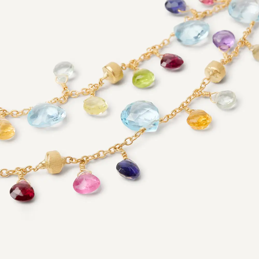 Kolekce Paradise je oslavou barev, světla a radosti ze života. Marco Bicego v ní spojuje jemné řetízky z 18kt zlata s pestrou paletou drahokamů – od turmalínů, akvamarínů až po křemeny a topazy. Výsledkem jsou šperky plné hravé energie, které připomínají mořské pobřeží zalité sluncem a bezstarostnou atmosféru léta.