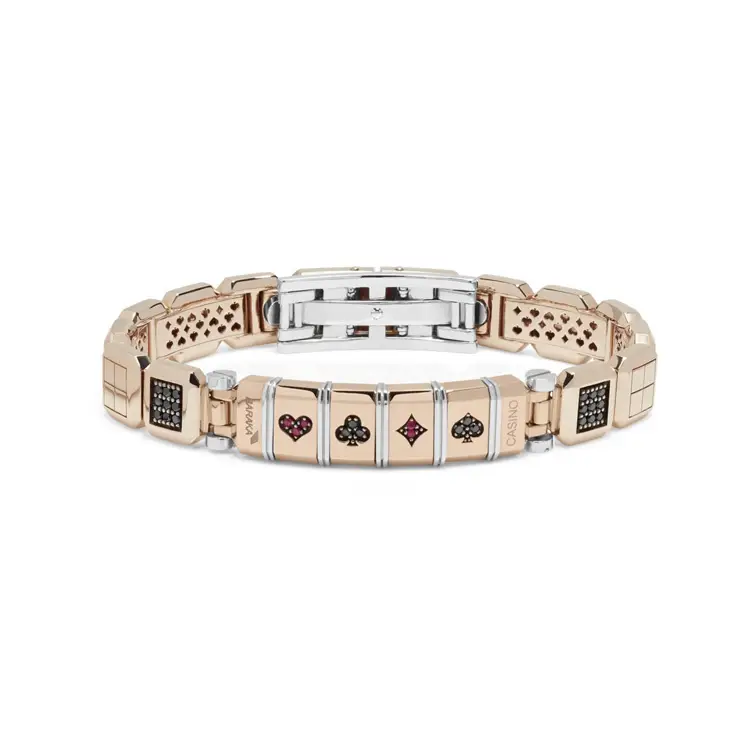 Detaily pak doplňují přírodní rubíny o celkové hmotnosti 0,09 ct, jejichž červená barva přináší do designu vášeň a energii. Náramek Baraka BR292331 představuje dokonalou rovnováhu mezi maskulinitou, luxusem a řemeslnou dokonalostí — ideální volba pro moderního muže, který oceňuje sílu detailu.