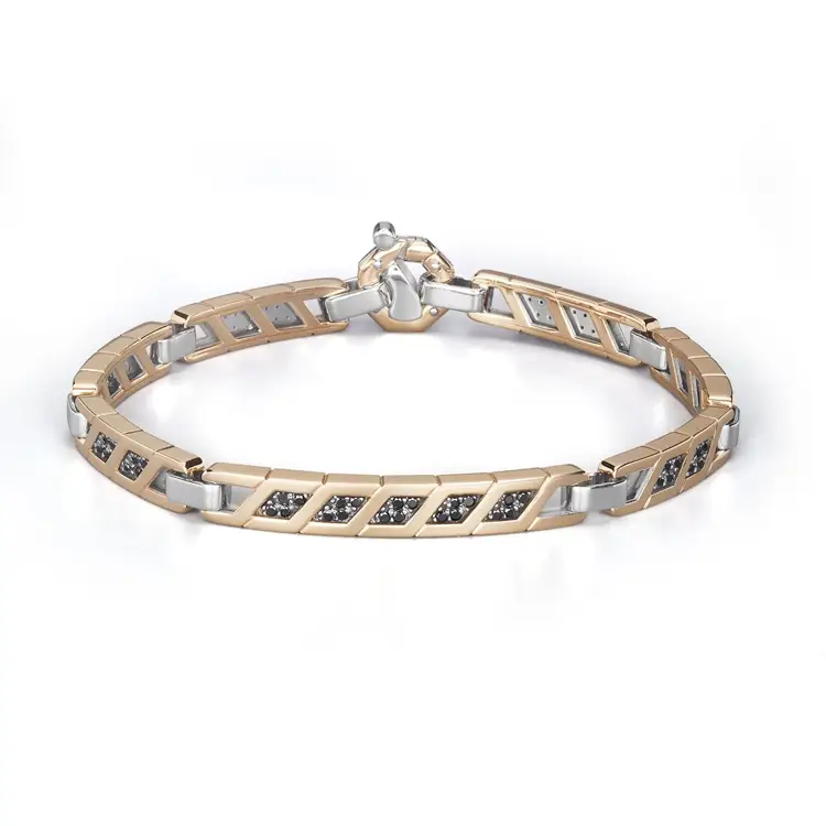 Hlavní ozdobou tohoto šperku je 68 přírodních černých diamantů v kulatém brusu (Round) s celkovou karátovou hmotností 0,68 ct. Jejich temný lesk vytváří výrazný kontrast se zlatem, čímž dodává náramku odvážný a sofistikovaný charakter. Tyto kameny symbolizují sílu, odolnost a vkus — hodnoty, které přesně odpovídají duchu značky Baraka.