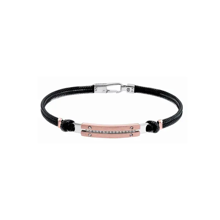 Jiskřivý akcent dodávají diamanty (15 ks) v kulatém brusu / Round, bílé barvy (původ: přírodní), které zvýrazňují bicolor provedení a dodávají náramku výrazný, ale kultivovaný lesk. Výsledkem je nadčasový, mužný a univerzální klenot, po němž sáhnete každý den.