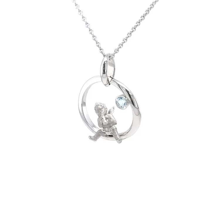 Centrálním prvkem přívěsku je přírodní akvamarín o hmotnosti 0,25 ct, který se vyznačuje svou uklidňující modrou barvou. Tento kámen ve tvaru Round a rozměru 4,30 mm symbolizuje čistotu, harmonii a duchovní klid – přesně ty vlastnosti, které vyjadřuje kolekce My Angel. Bílý lesk zlata dokonale ladí s průzračností akvamarínu, čímž vzniká šperk plný světla a jemného třpytu.