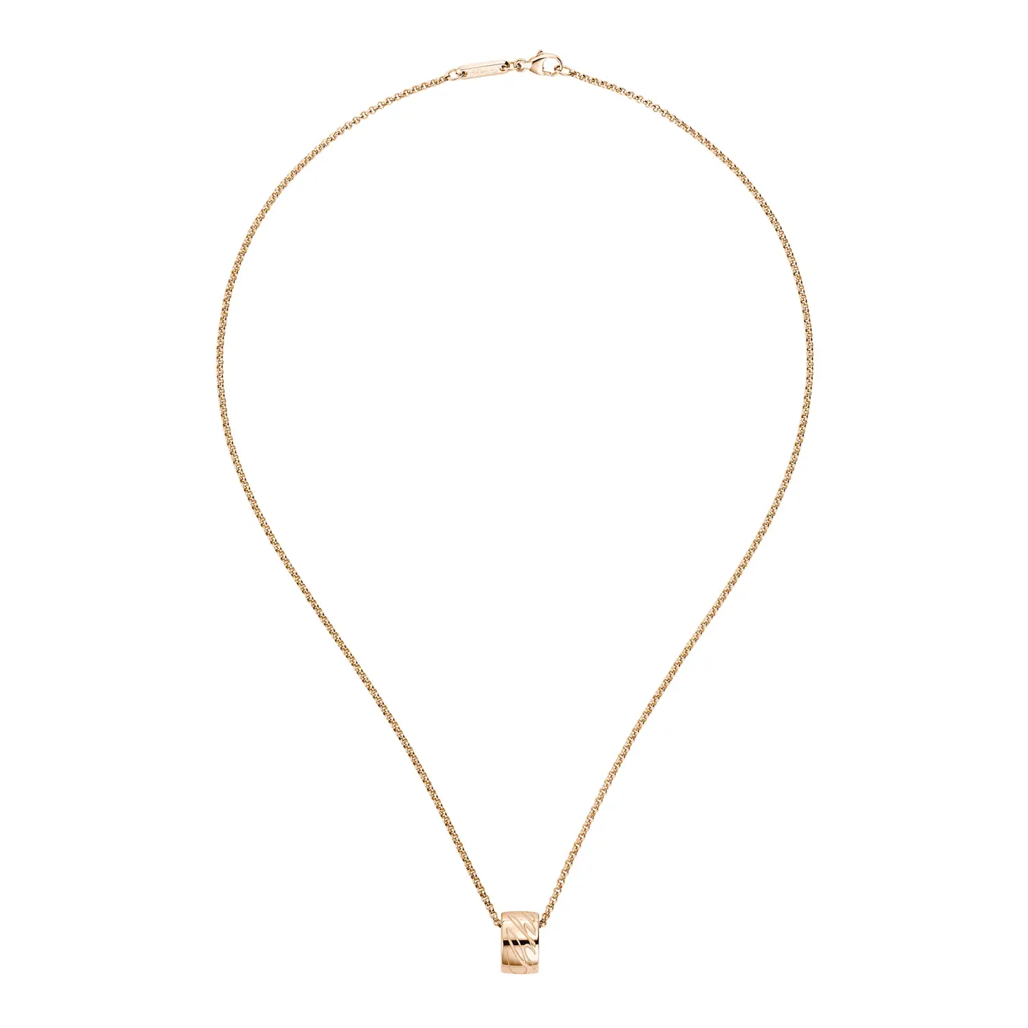 Tento elegantní náhrdelník z kolekce Chopardissimo vyjadřuje esenci značky Chopard – harmonii ladných křivek, plynulých linií a decentního luxusu. Vyrobený z 18 kt růžového zlata, zdobený ikonickým rytým logem Chopard, představuje spojení moderního designu a nadčasové elegance. Jeho jemný tvar a teplý odstín zlata podtrhují ženskost a přirozený půvab nositelky.