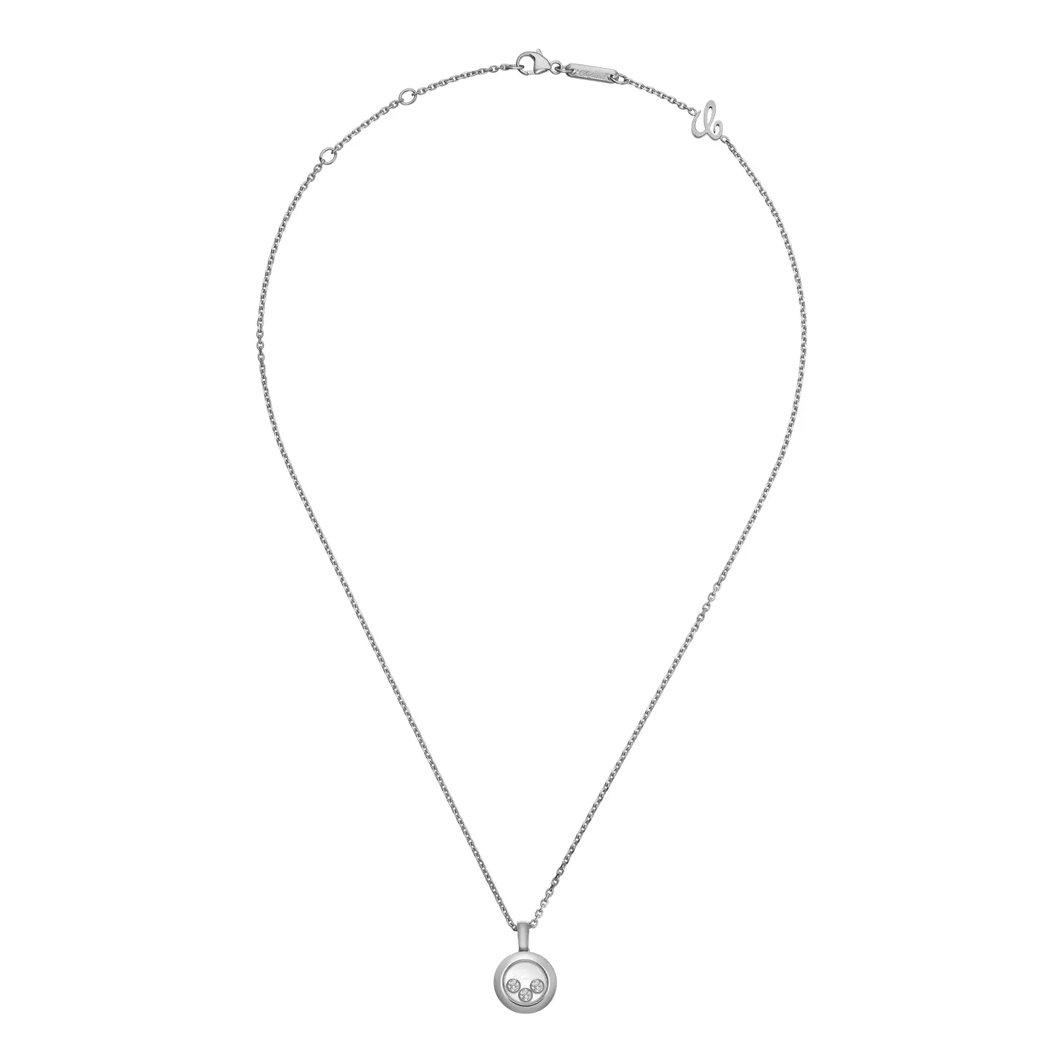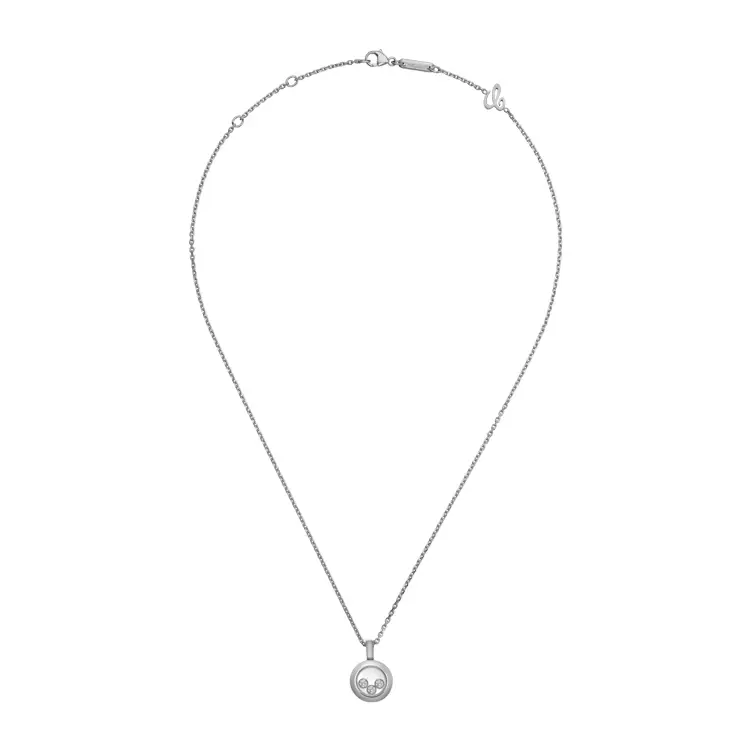 Chopard Happy Diamonds Pendant 79A018-1001 vyniká jako mistrovské dílo v jemné eleganci a minimalistickém luxusu. Jeho lesklé 18kt bílé zlato (ryzost 750/1000) přidává šperku sofistikovaný šmrnc, zatímco přívěsek o průměru 12,10 mm působí vzdušným a precizním dojmem.