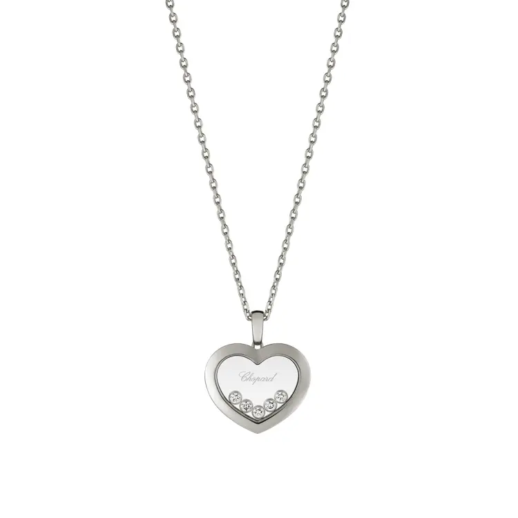 Chopard Happy Diamonds Přívěsek 79A038-1001 je mistrovským šperkem, který přetváří symboly lásky a elegance do nadčasové elegance. Tento půvabný klenot je vyroben z 18kt bílého zlata (ryzost 750/1000) s dokonale lesklým povrchem, který šperku propůjčuje sofistikovanou čistotu a jemný třpyt.