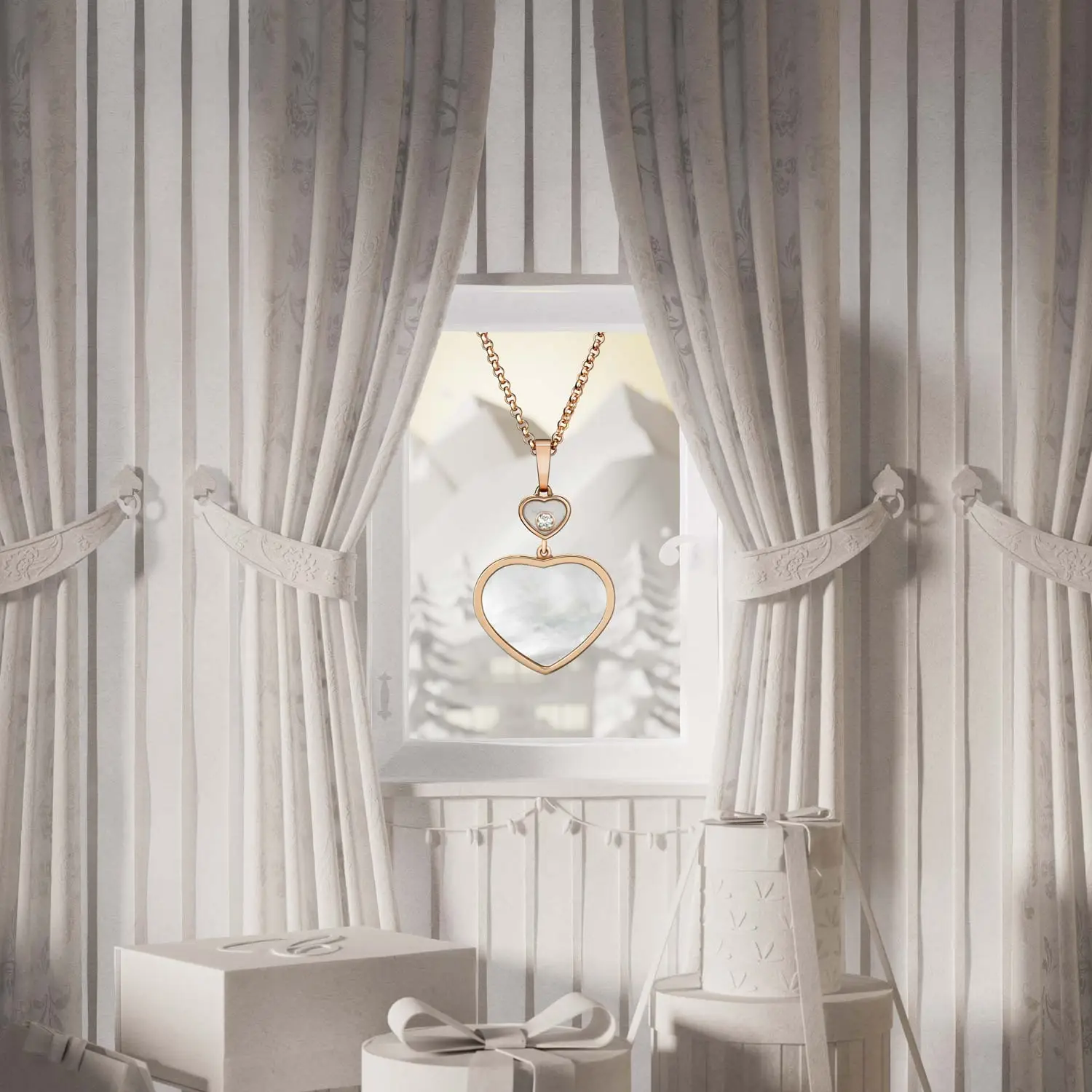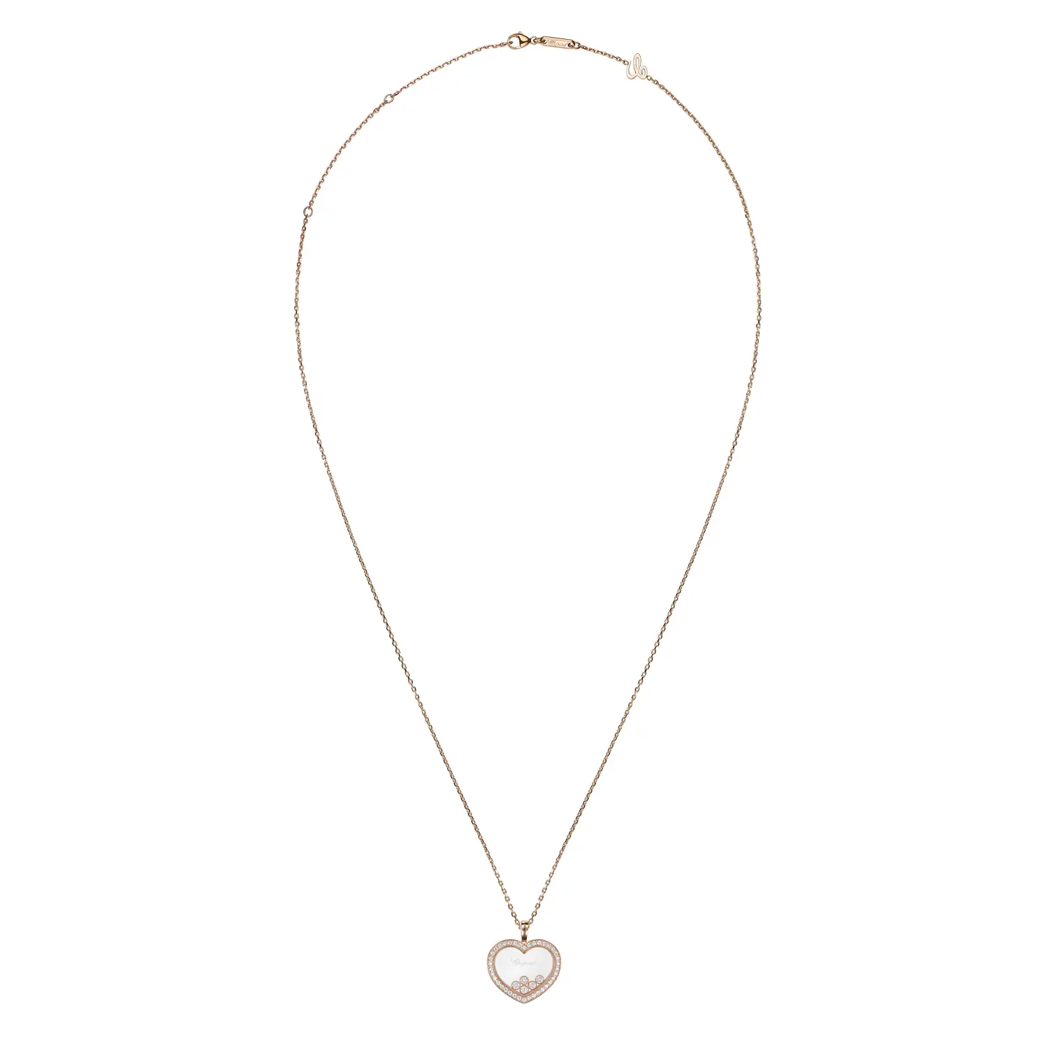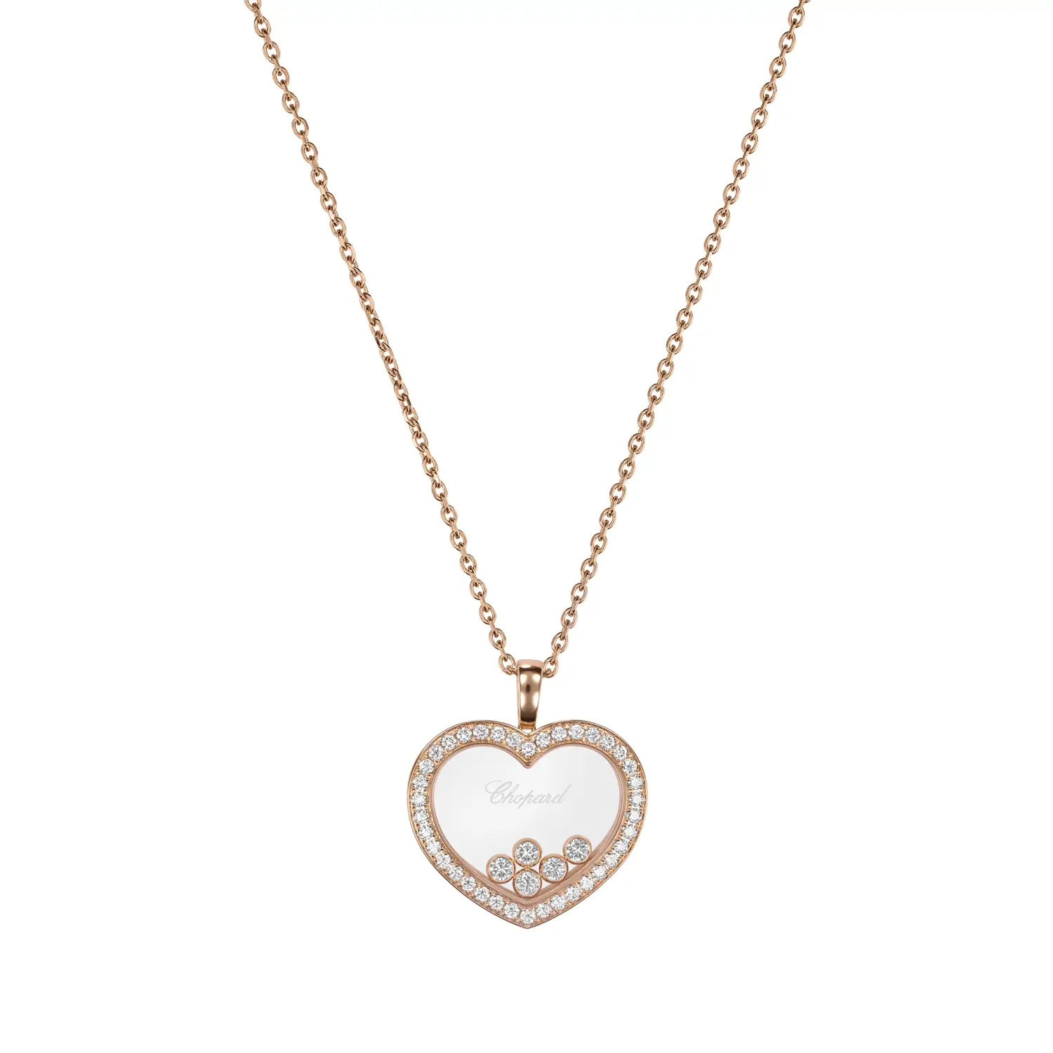 Přívěsek Chopard Happy Diamonds 79A039-5201 představuje elegantní spojení jemného luxusu a hravého pohybu, který je charakteristický pro tuto ikonickou kolekci. Vyroben z 18karátového etického růžového zlata, zdobí jej tři volně pohybující se diamanty uzavřené mezi dvěma safírovými sklíčky. Každý pohyb kamene zachytává světlo a oživuje šperk jemným třpytem a elegancí.