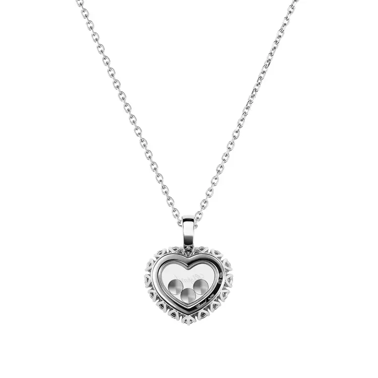 Chopard Happy Diamonds Přívěsek Srdce 79A615-1001 je ikonickým symbolem lásky a elegance, který spojuje jemnost luxusního designu s brilantním třpytem drahých kamenů. Tento šperk je vytvořen z 18kt bílého zlata (ryzost 750/1000) s dokonale lesklým povrchem, díky čemuž působí sofistikovaně a nadčasově.
